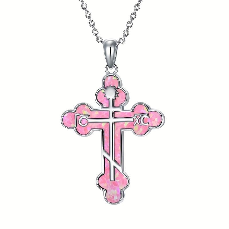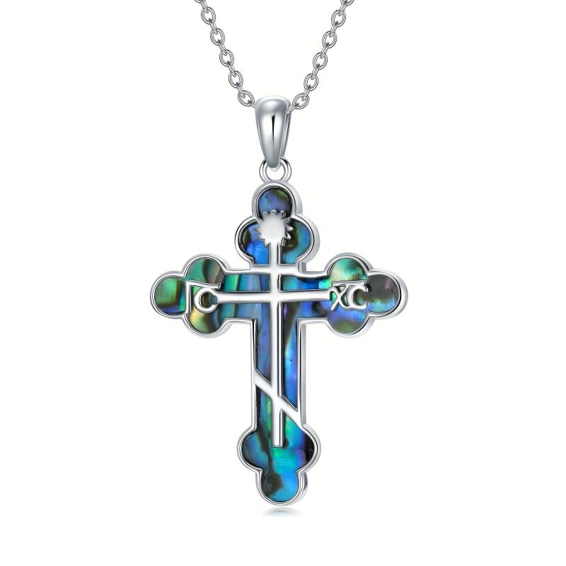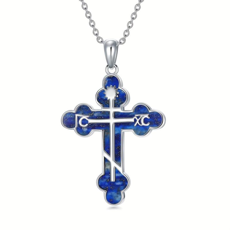 This stunning necklace features an Eastern Orthodox cross pendant made from turquoise obsidian and set in 925 sterling silver. Perfect for both men and women who appreciate religious jewelry.