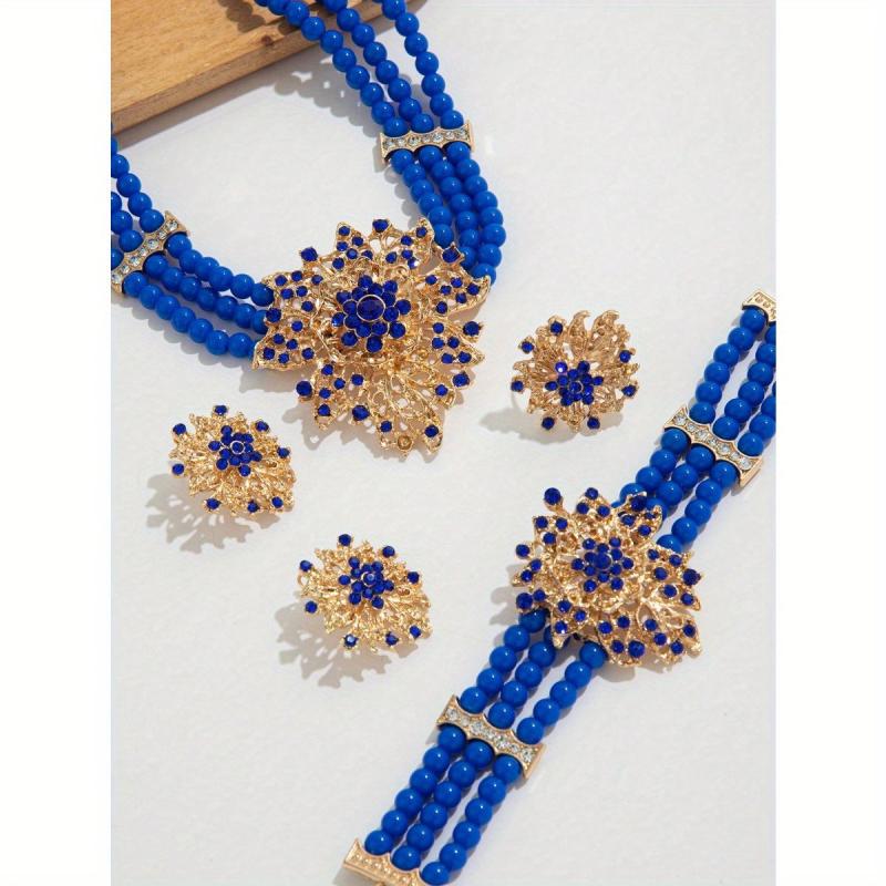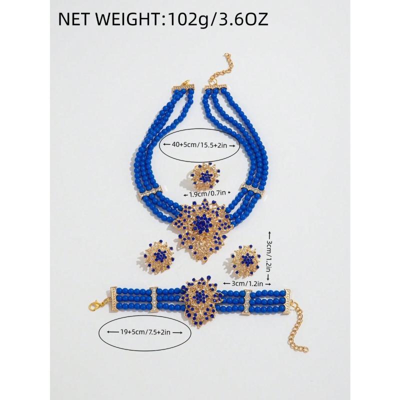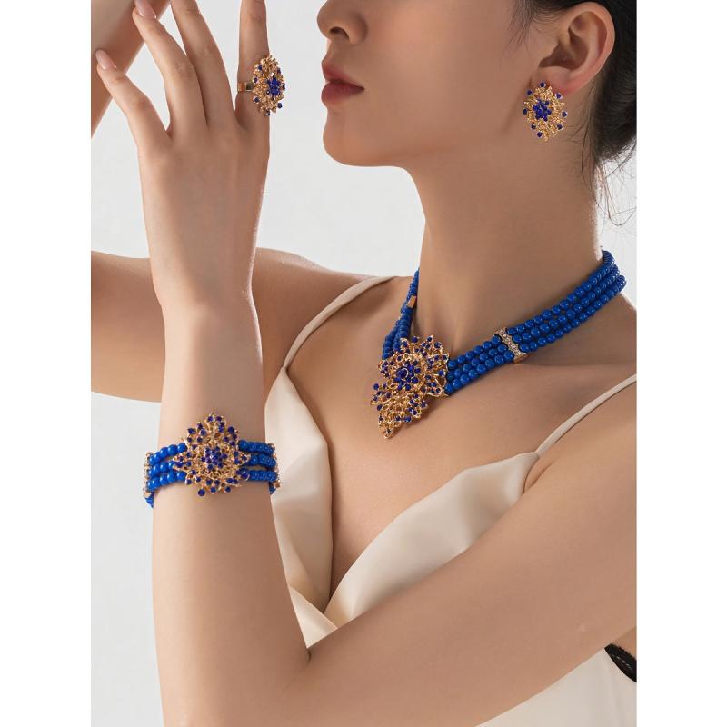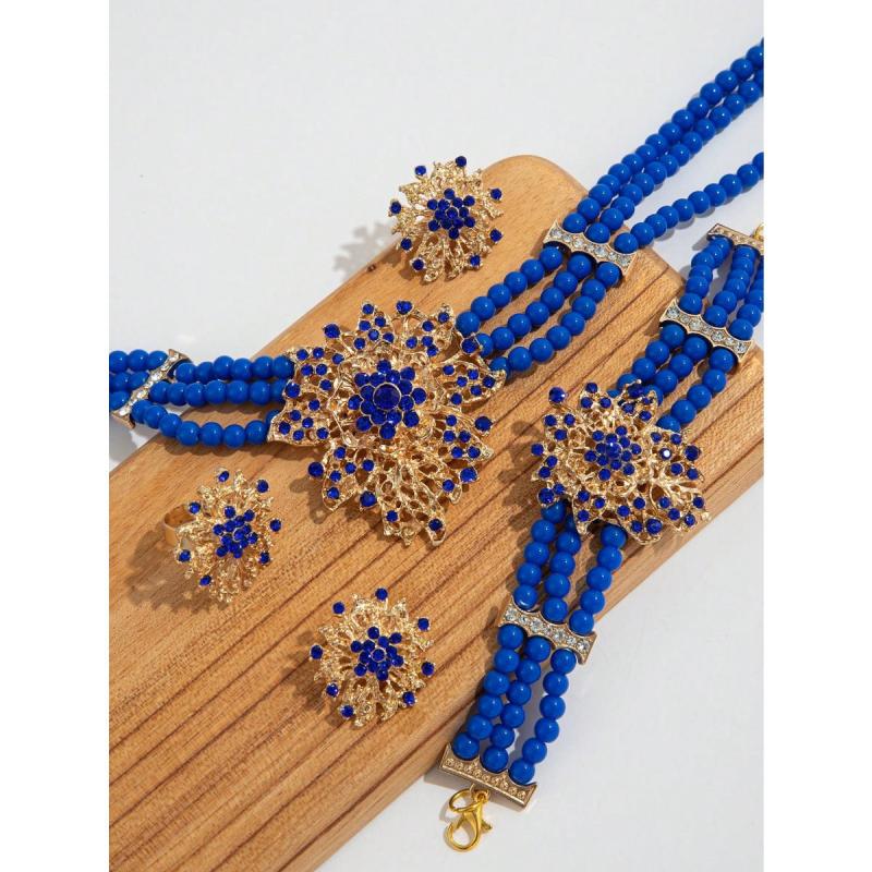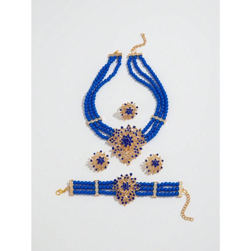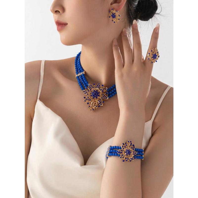 Elevate your style with this classic urban jewelry set that includes a necklace, bracelet, earrings, and ring. Perfect for daily wear or festive celebrations.