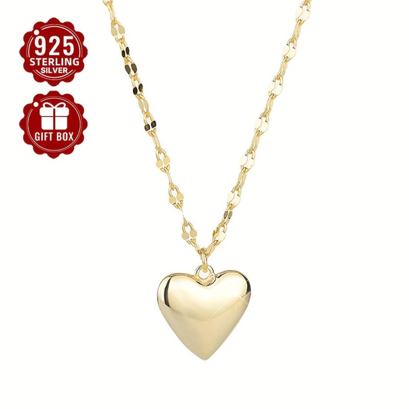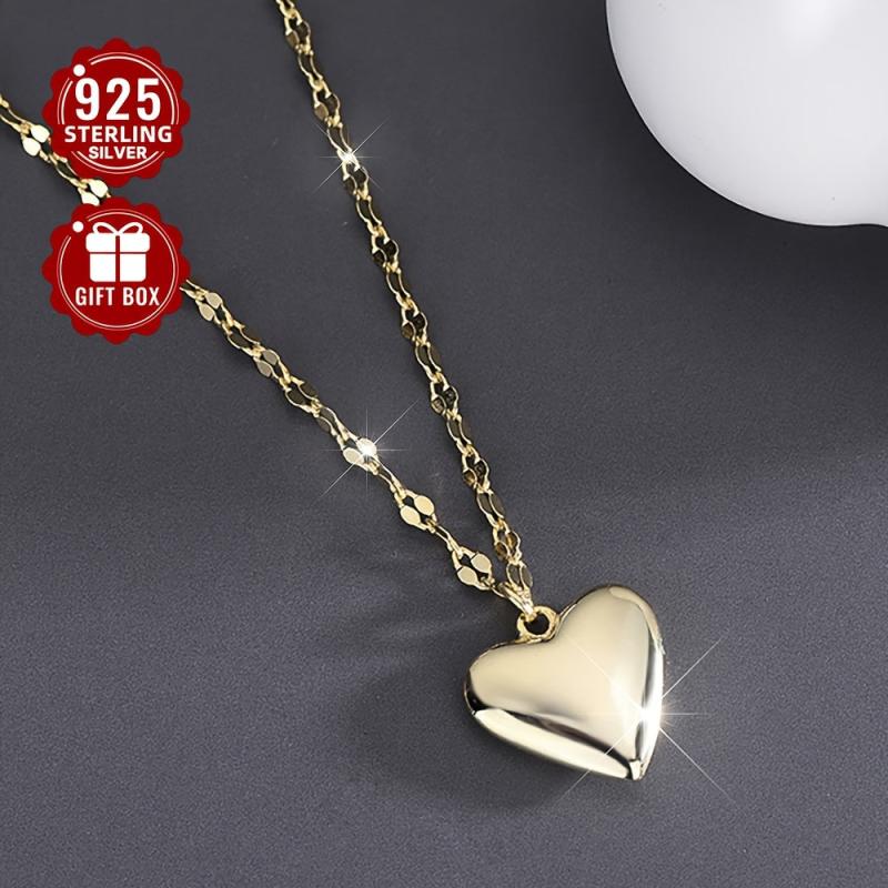Elegant heart pendant necklace made of 925 sterling silver with French style design. Perfect for anniversaries, this jewelry piece is a thoughtful gift for women and mothers.
