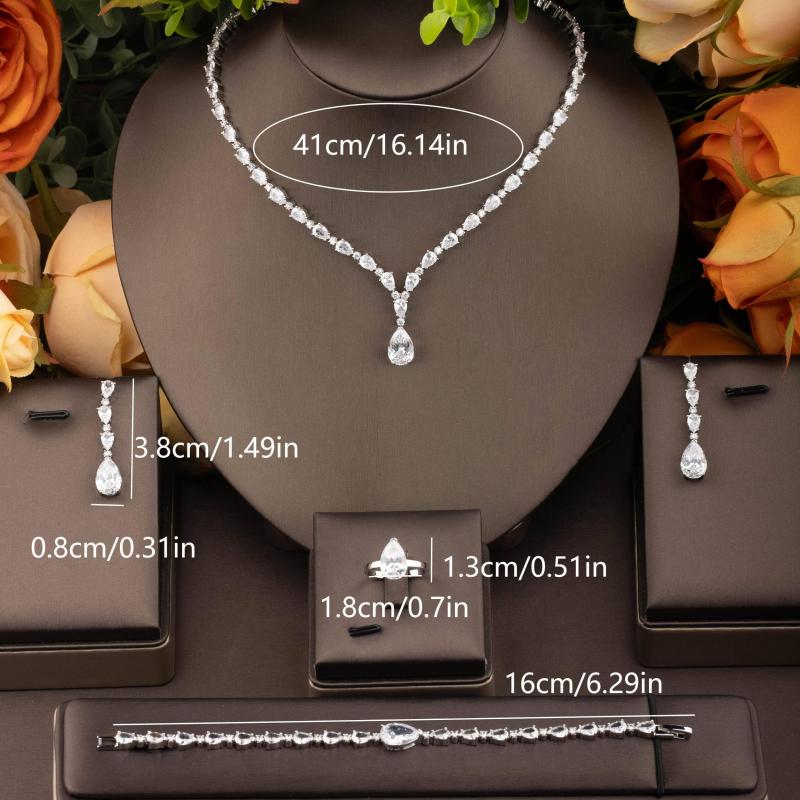 This stunning bridal jewelry set features a water drop shape design with copper inlaid cubic synthetic zirconia, perfect for Middle Eastern weddings and parties.