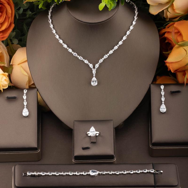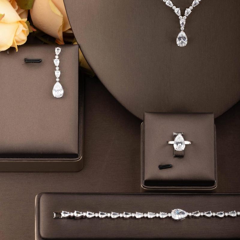 Water Drop Shape CZ Bridal Jewelry Set for Middle Eastern Weddings