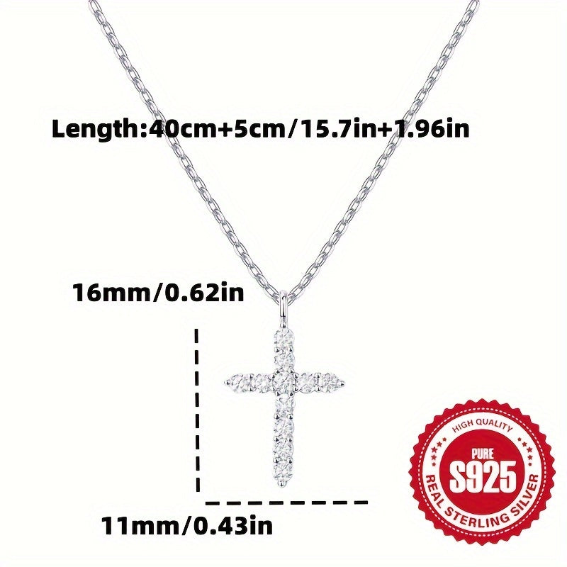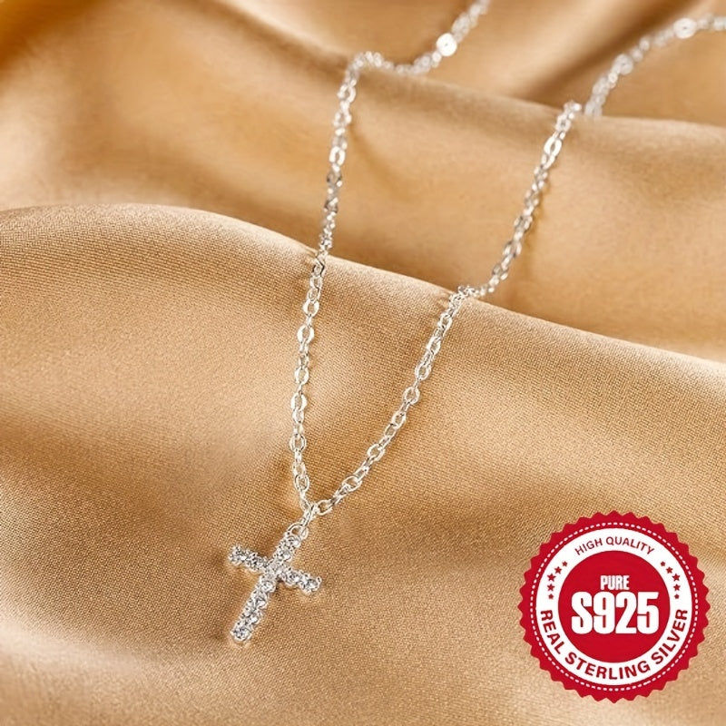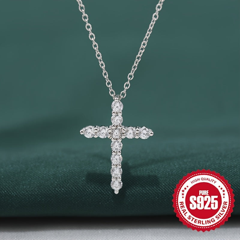 Elegant and festive cross pendant necklace with shining synthetic zirconia in S925 silver, suitable for Christmas or any special occasion. Lightweight design (1.5g) and low allergy material for all-day wear.
