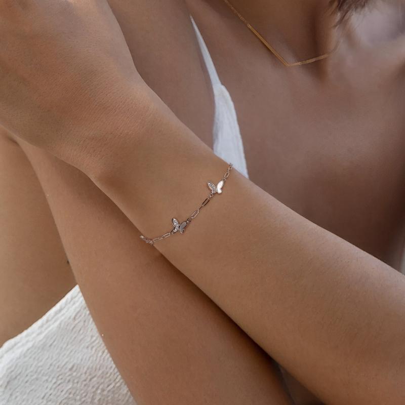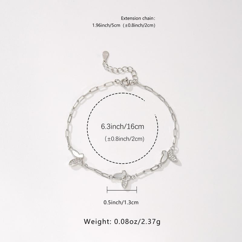 This charming bracelet features a butterfly design made with S925 silver material, ideal for parties or as a birthday gift. Hypoallergenic and stylish.