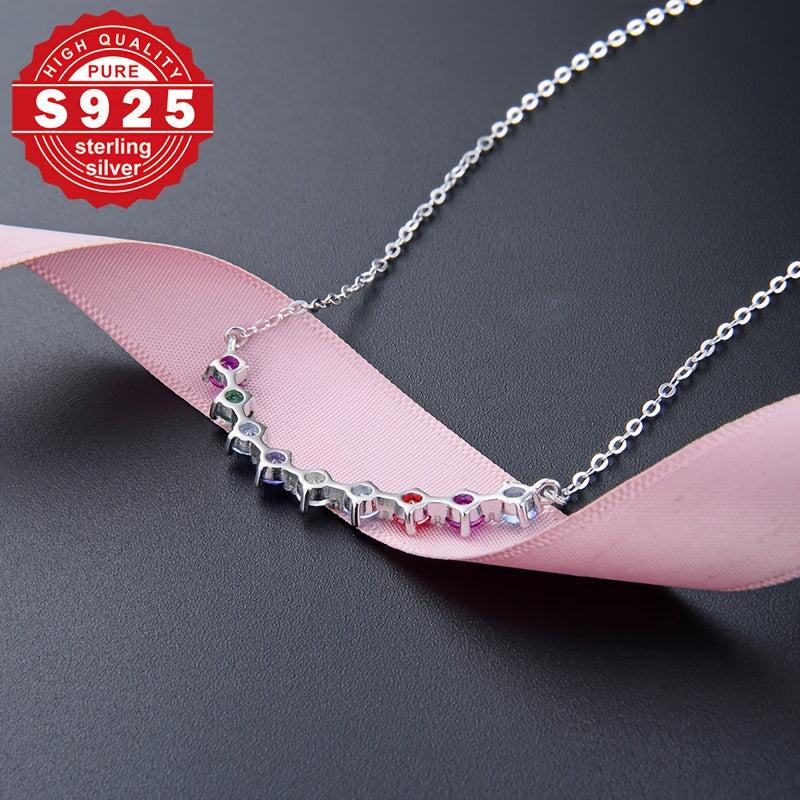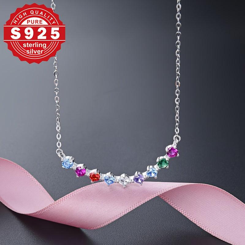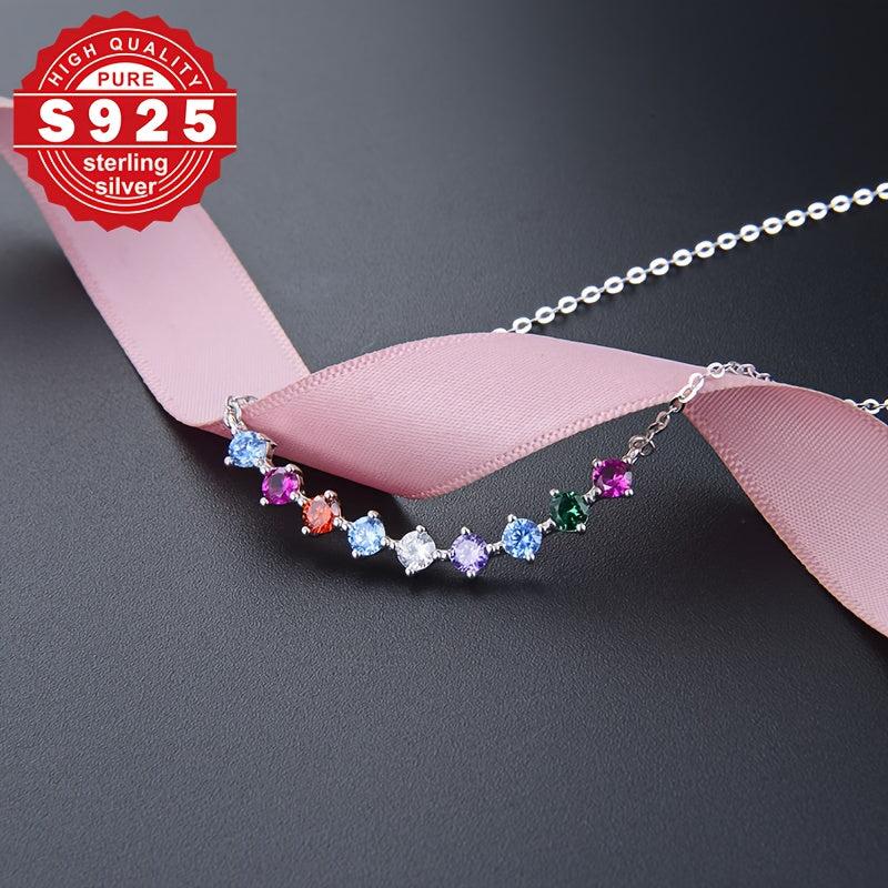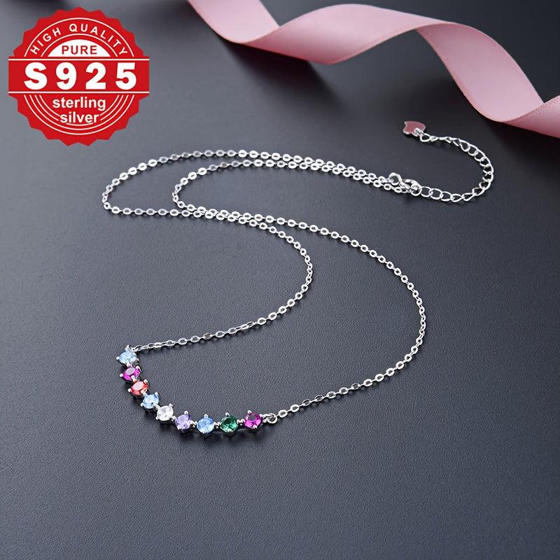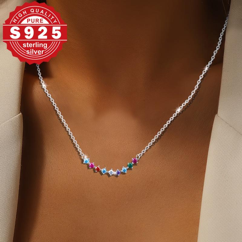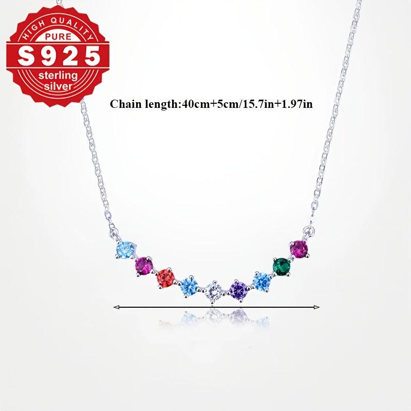 Elegant S925 Sterling Silver necklace with vibrant synthetic zirconia stones. Perfect accessory for dinner parties, weddings, and special occasions.