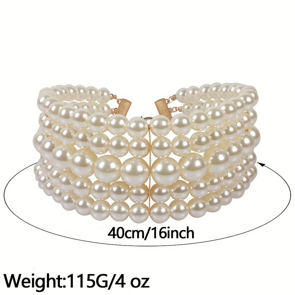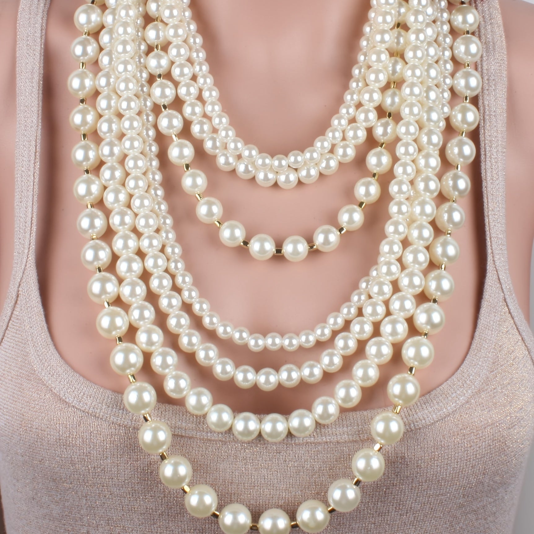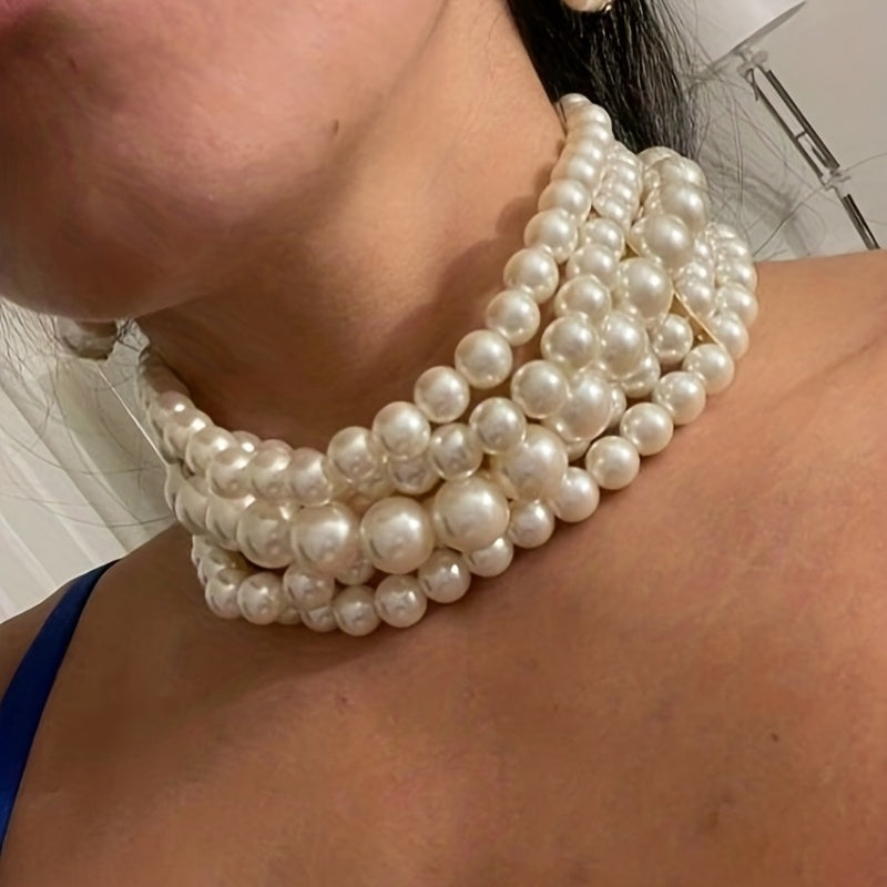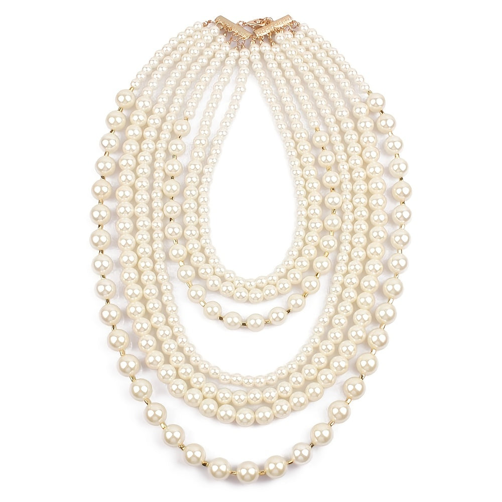 Add a touch of elegance to your outfit with this multilayer faux pearl beaded necklace. Perfect for pairing with sweaters or dresses.