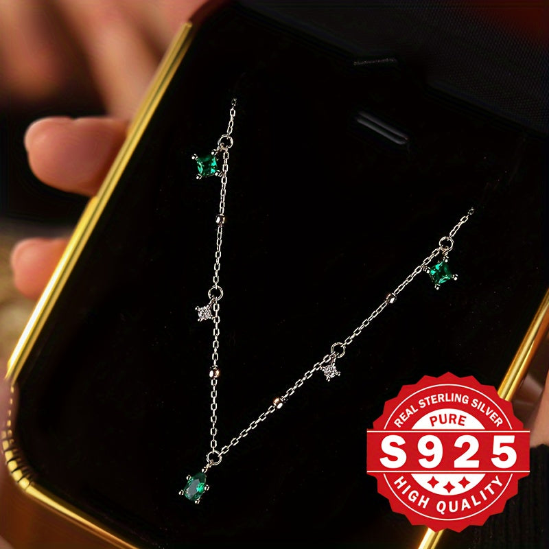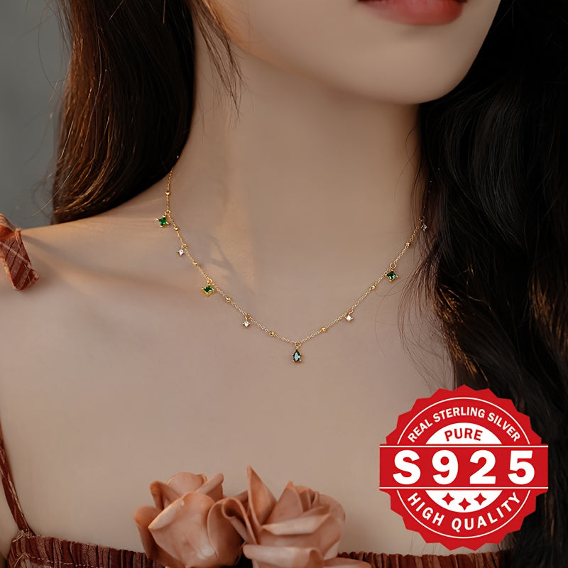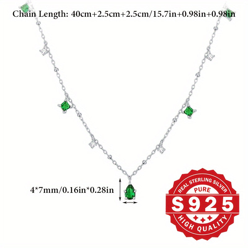 This unique and exclusive necklace features a green water drop artificial zirconia on a pure s925 silver chain. Perfect for a touch of elegance.