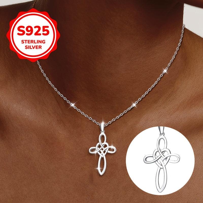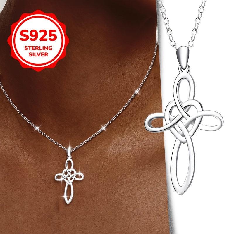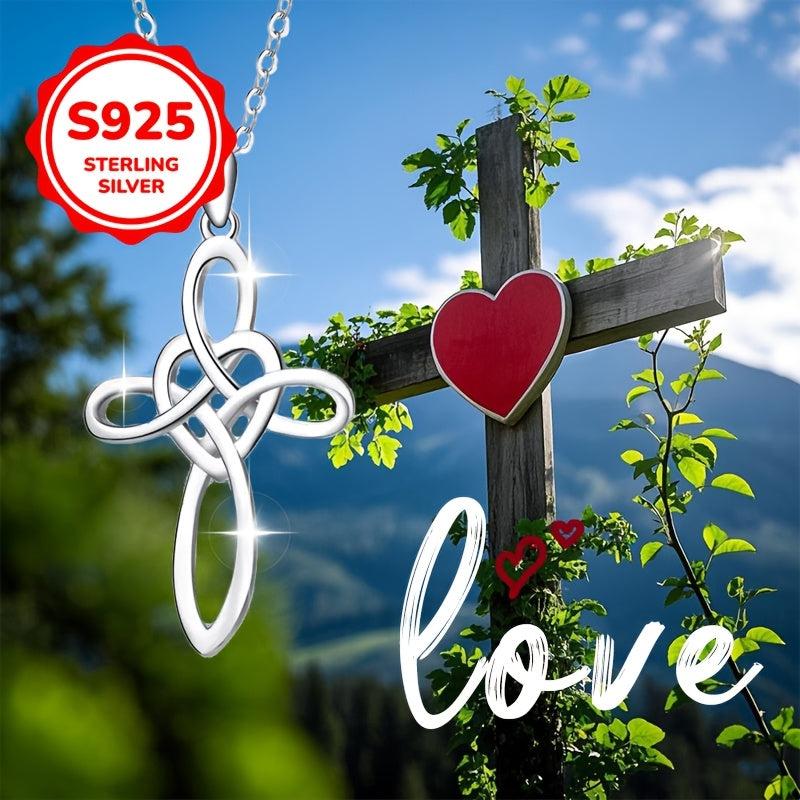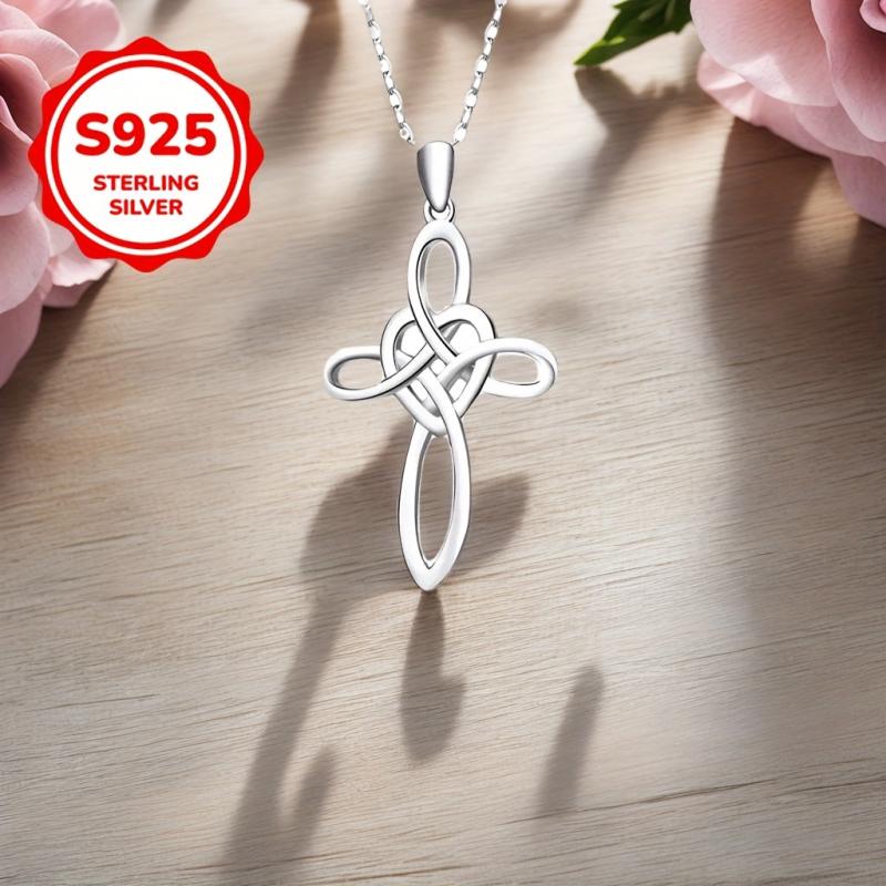 This pendant necklace features an interwoven design of heart, cross, and Celtic knot, making it a meaningful gift for mothers or a beautiful accessory for weddings. Made of high-quality 4g S925 silver.