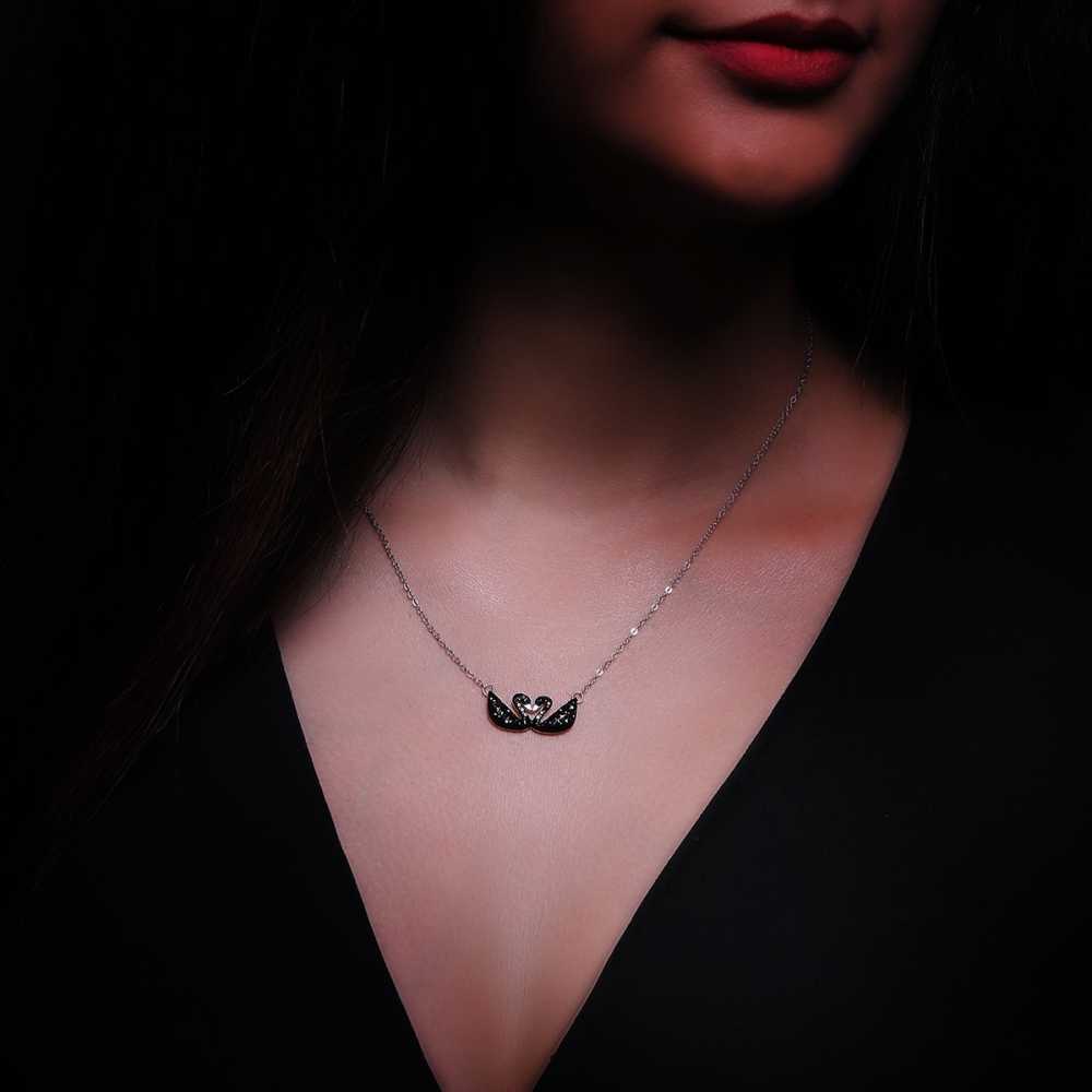 Ce collier au design raffiné et rare est composé d'un pendentif représentant deux cygnes noirs qui se rencontrent. La chaîne se posera parfaitement autour du cou. Sa forme est parfaitement adaptée aux tourtereaux.