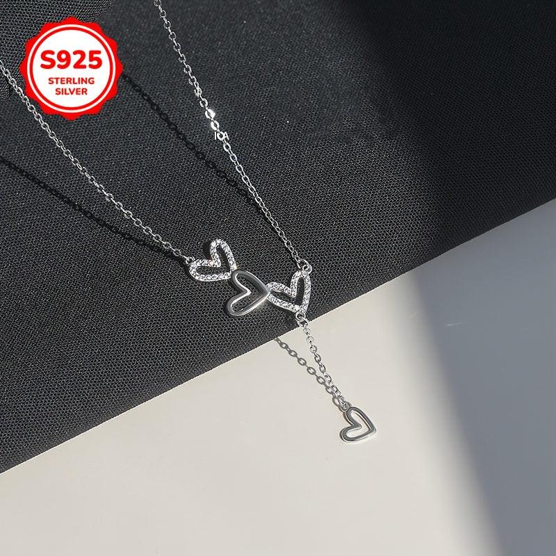 Elegant S925 sterling silver necklace featuring a hollow heart pendant with tassel. Perfect for any occasion.