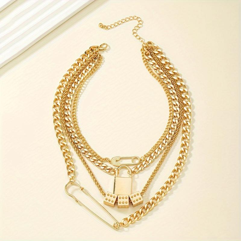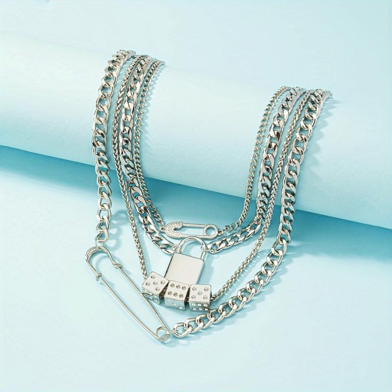 Add a touch of fun to your party look with this layered necklace featuring a dice pendant. Secure pin lock closure for easy wear.