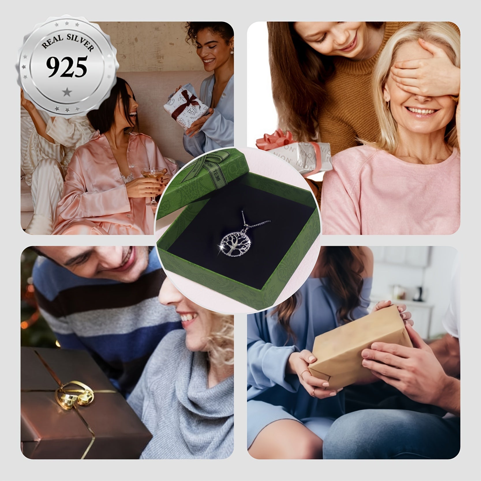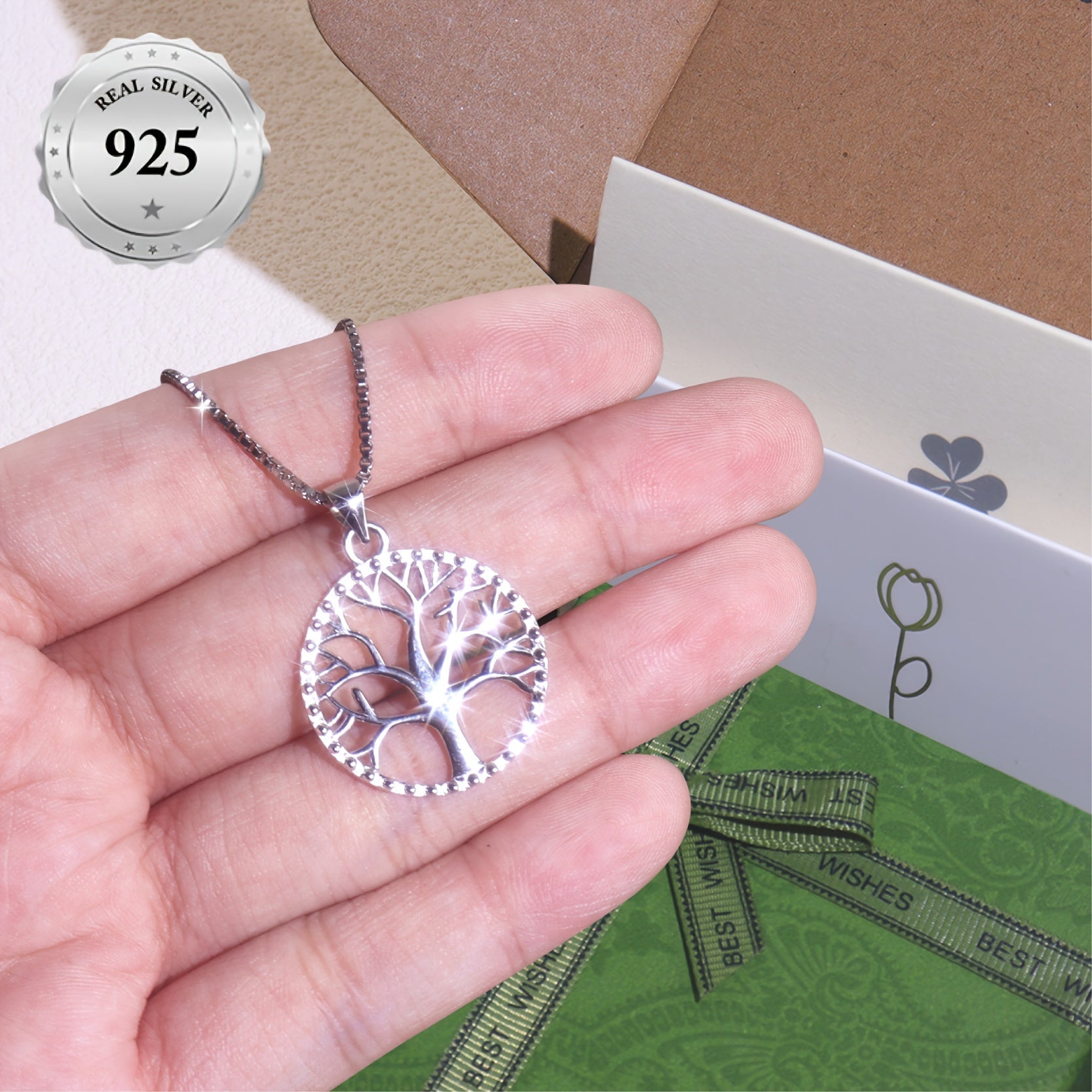 Celebrate holidays with this classic Tree of Life pendant necklace. Made of S925 silver, it's perfect for Thanksgiving, Christmas, Mother's Day, and more. Comes in a beautiful raffia gift bag.