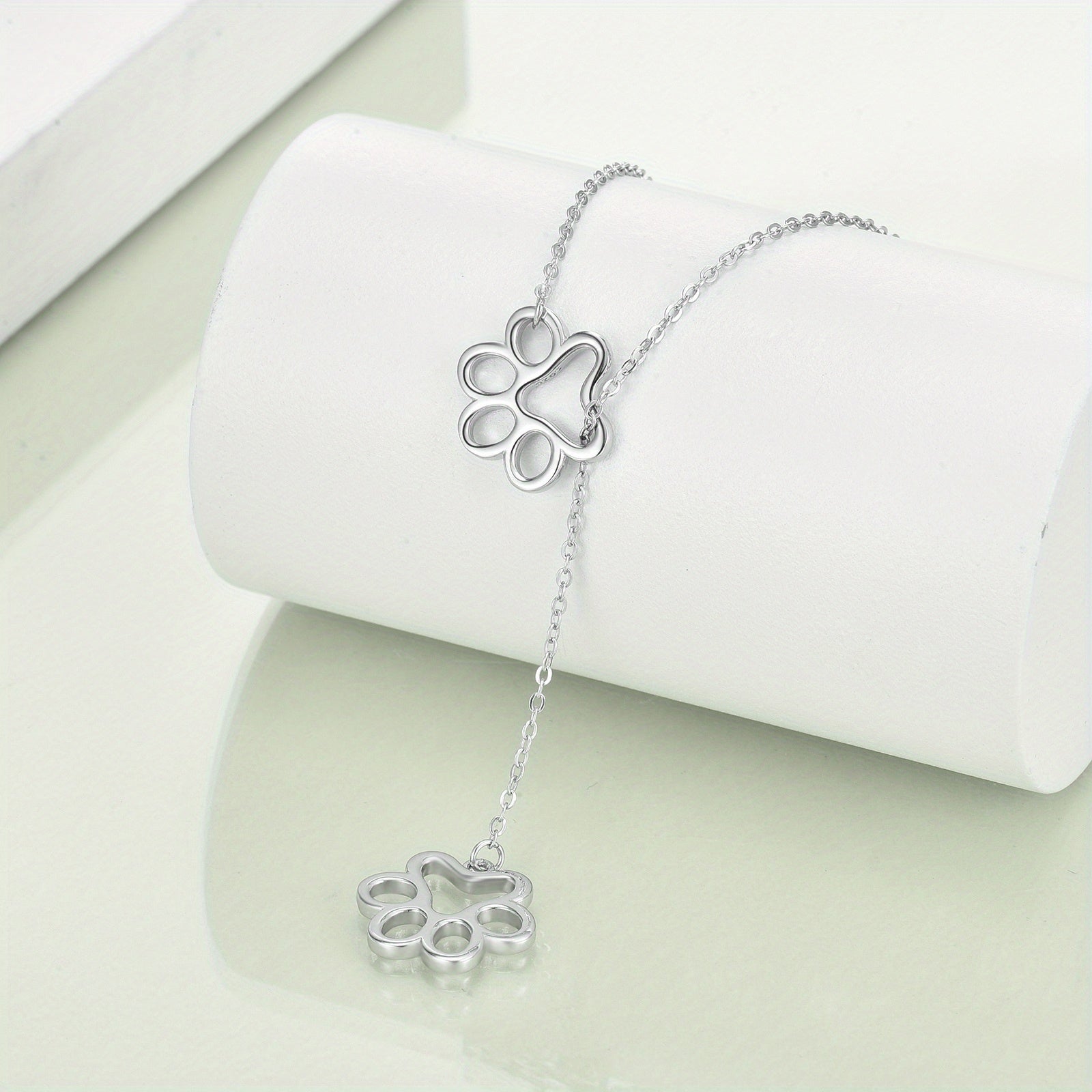 This sterling silver necklace is a perfect birthday gift for dog moms who love their furry friends. The double paw print design adds a touch of elegance to any outfit.