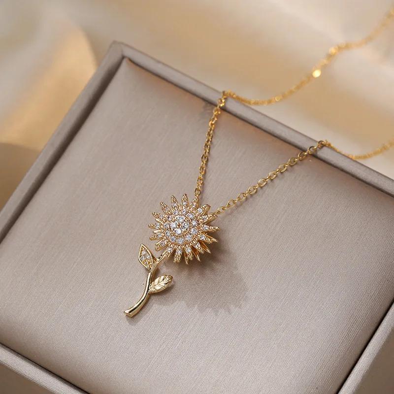 Add a twist to your style with this sunflower pendant necklace that radiates personality. Perfect for parties or everyday wear, this stainless steel accessory makes a great birthday gift.