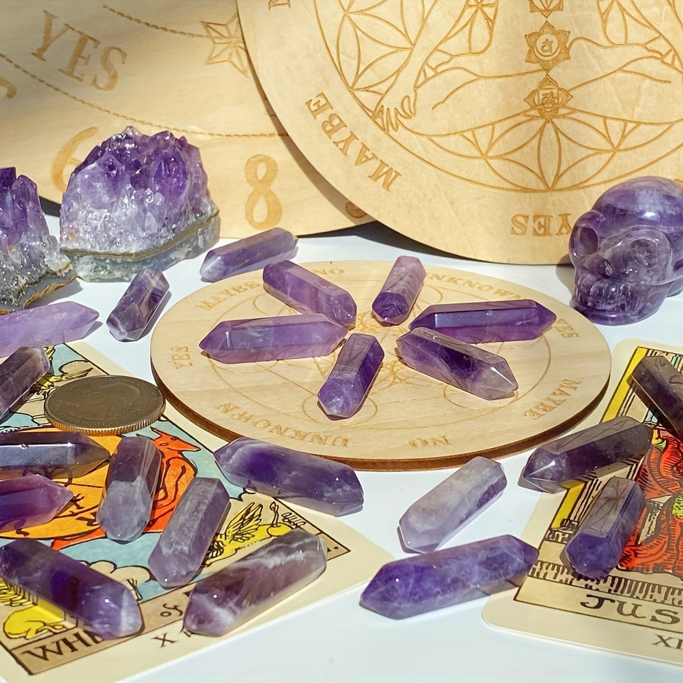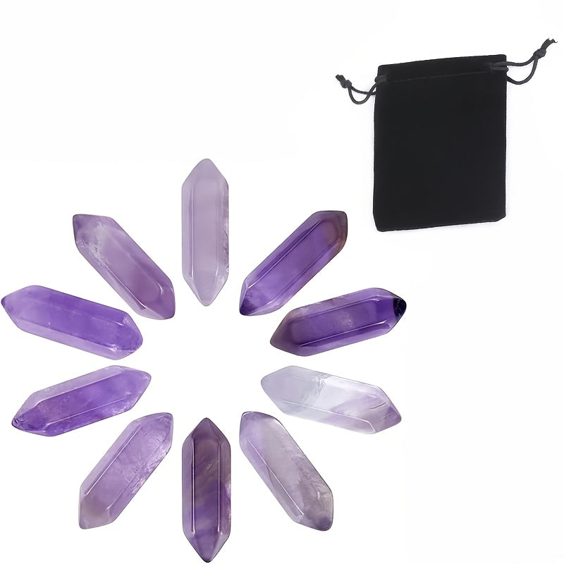 This set includes 10 double crystal stone wands that are polished and hexagonal in shape. Perfect for crystal healing, meditation, and home decor.