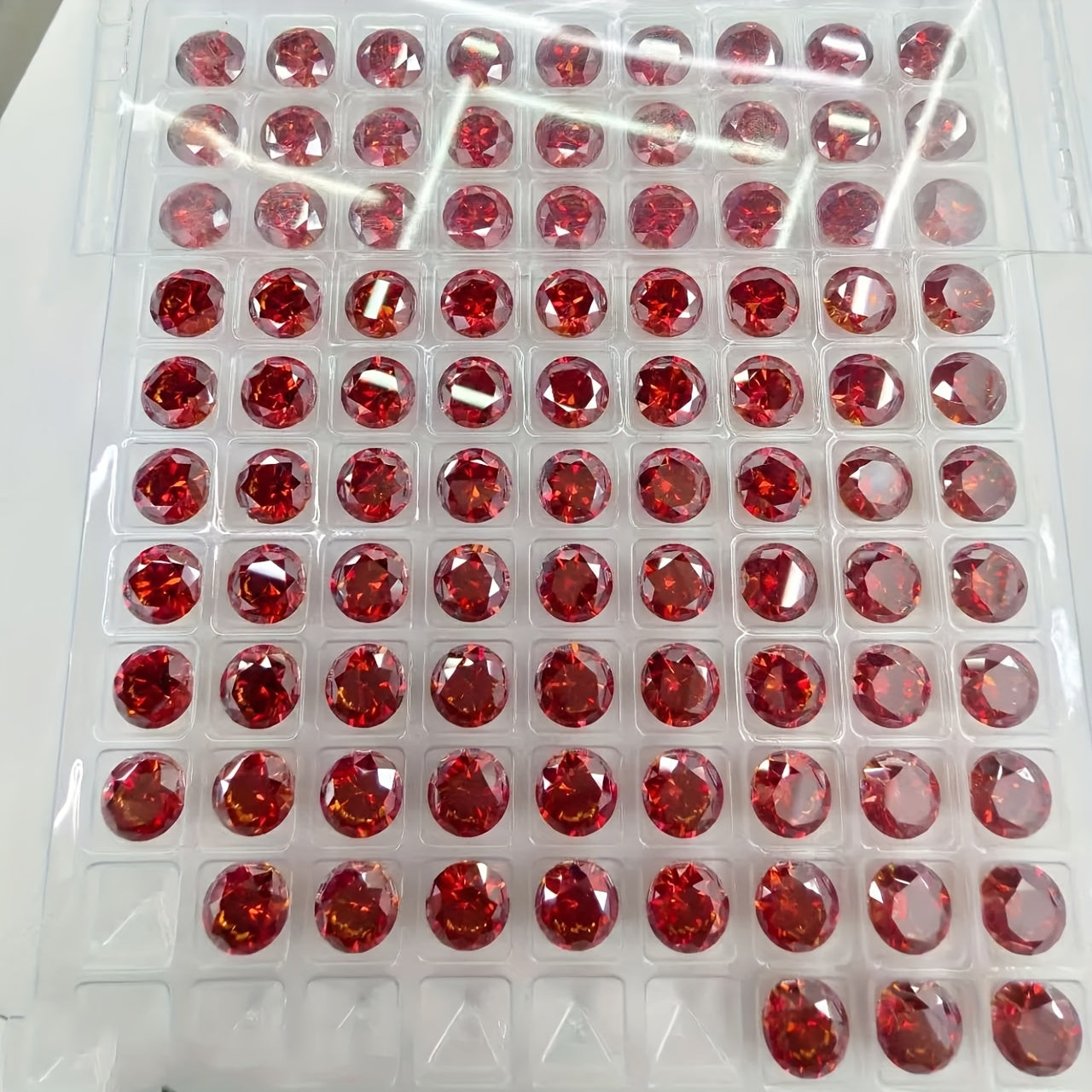 Get the beauty of a round red synthetic moissanite gemstone with VVS1 clarity to create stunning DIY jewelry pieces. These loose stones are perfect for necklaces and more.