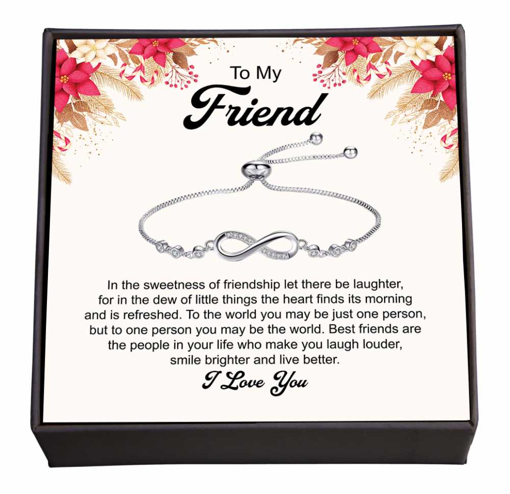 Bling Queen est une marque de bijoux de mode abordable avec différents types de produits comme des bracelets, des colliers, des boucles d'oreilles, des bagues, etc. adaptés aux femmes, aux hommes et aux enfants. Symbole d'amour et d'amitié éternels, ce bracelet infini pour femme en plaqué argent est un magnifique rappel des liens indéfectibles. Son élégant charm infini, réalisé en plaqué argent de haute qualité, brille par son design épuré et minimaliste qui s'adapte à tous les styles. Associé à une chaîne réglable, il s'adapte confortablement à toutes les tailles de poignet, idéal au quotidien comme pour les grandes occasions. Accompagné d'une carte-cadeau attentionnée, ce bracelet est le cadeau idéal pour un anniversaire, un anniversaire de mariage ou tout simplement pour témoigner votre affection à une personne chère. Offrez un cadeau empreint d'élégance et de tendresse avec ce bracelet, un souvenir qu'ils chériront et porteront près de leur cœur.