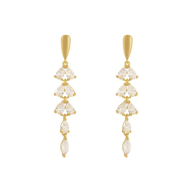 - Détails du produit : Fabriquée en cuivre plaqué or de haute qualité, ornée de pierres de zircone. Cette boucle d'oreille est dotée d'un fermoir à pression de sécurité.
