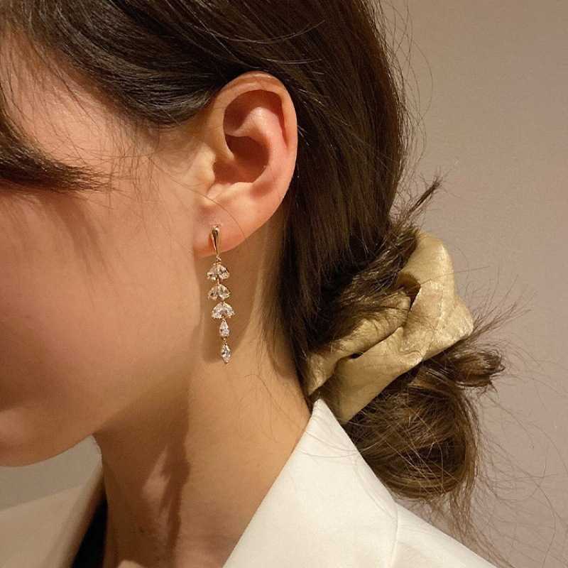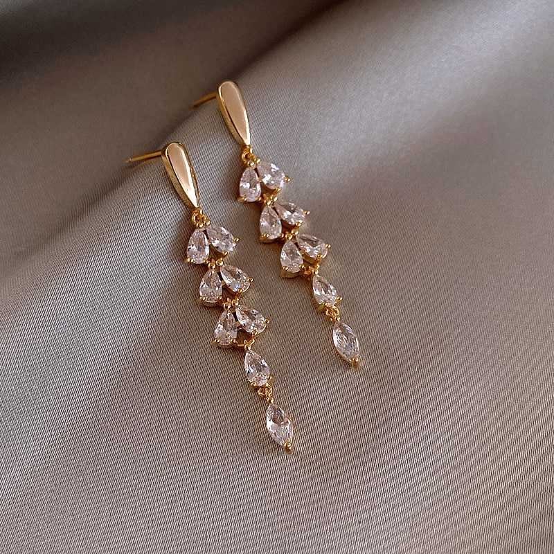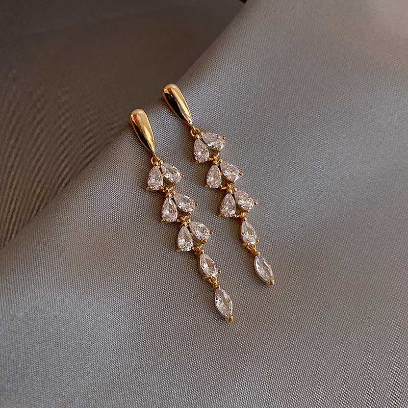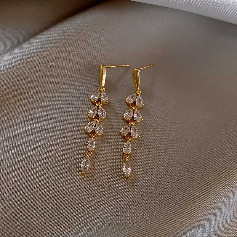 Bling Queen est une marque de bijoux fantaisie abordable proposant différents types de produits tels que des bracelets, des colliers, des boucles d'oreilles, des bagues, etc. adaptés aux femmes, aux hommes et aux enfants. Les boucles d'oreilles sont dotées de pompons délicats fabriqués à partir de fils fins ou de chaînes qui tombent gracieusement du corps principal de la boucle d'oreille. Ces pompons ajoutent du mouvement et de la fluidité au design, créant un sentiment de dynamisme et de féminité. Les boucles d'oreilles intègrent un motif de feuille, qui ajoute une touche naturelle et organique au design. Les feuilles sont généralement finement détaillées, avec des veines et une texture qui imitent l'apparence de vraies feuilles. Sophistiqué et accrocheur, il combine des détails complexes avec des pierres de zircone étincelantes pour créer un accessoire vraiment époustouflant.