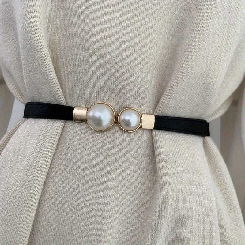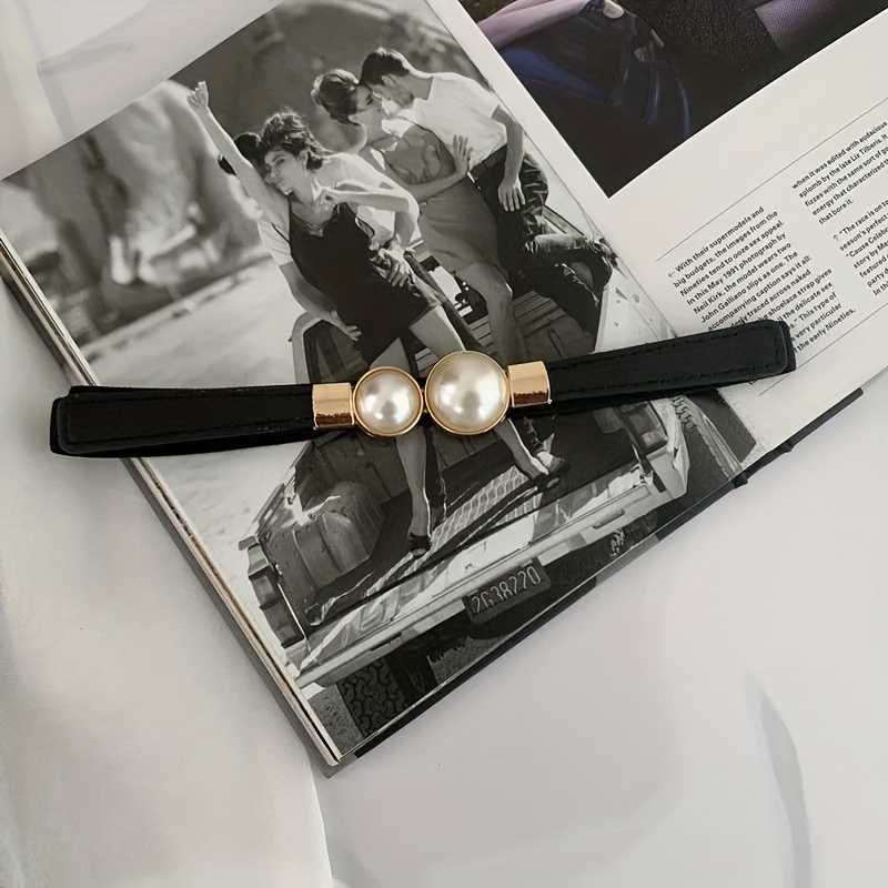 Ceinture fine luxueuse en fausses perles avec ceinture élastique réglable