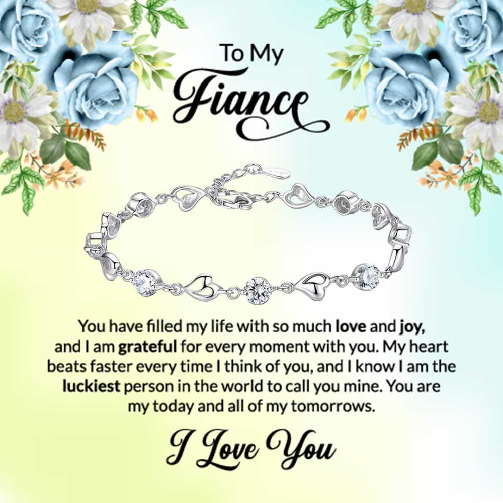 - Caractéristiques du produit : Ce bracelet est fabriqué dans un matériau de haute qualité plaqué argent et serti de zircones cubiques. Il est doté d'une fermeture sûre, confortable et facile. Il est accompagné d'une carte avec message.