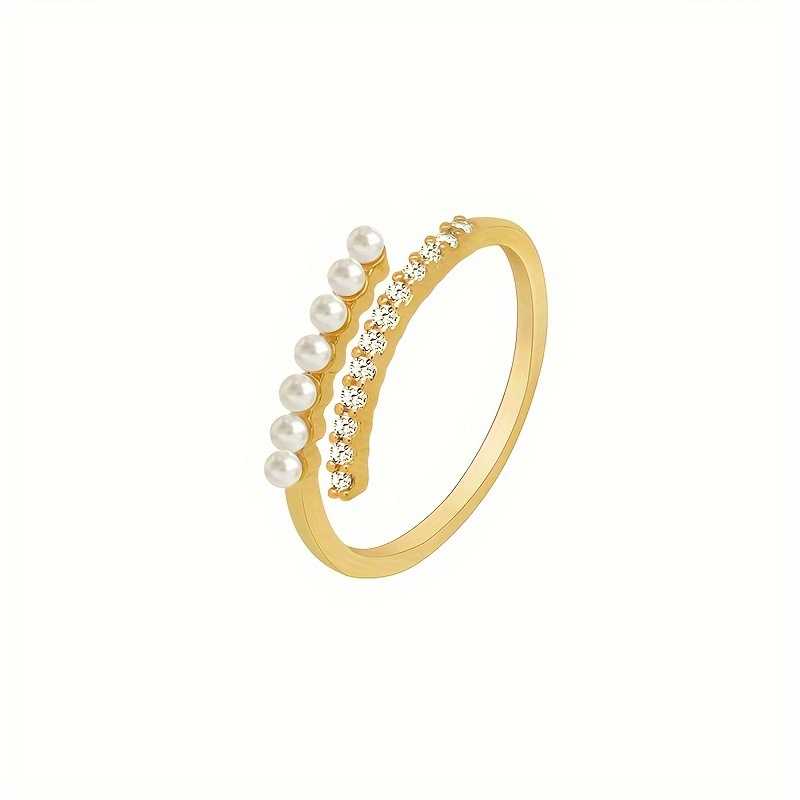 Wrap Ring Paved Artificial Pearl & Shining Rhinestone Jewelry Gift.