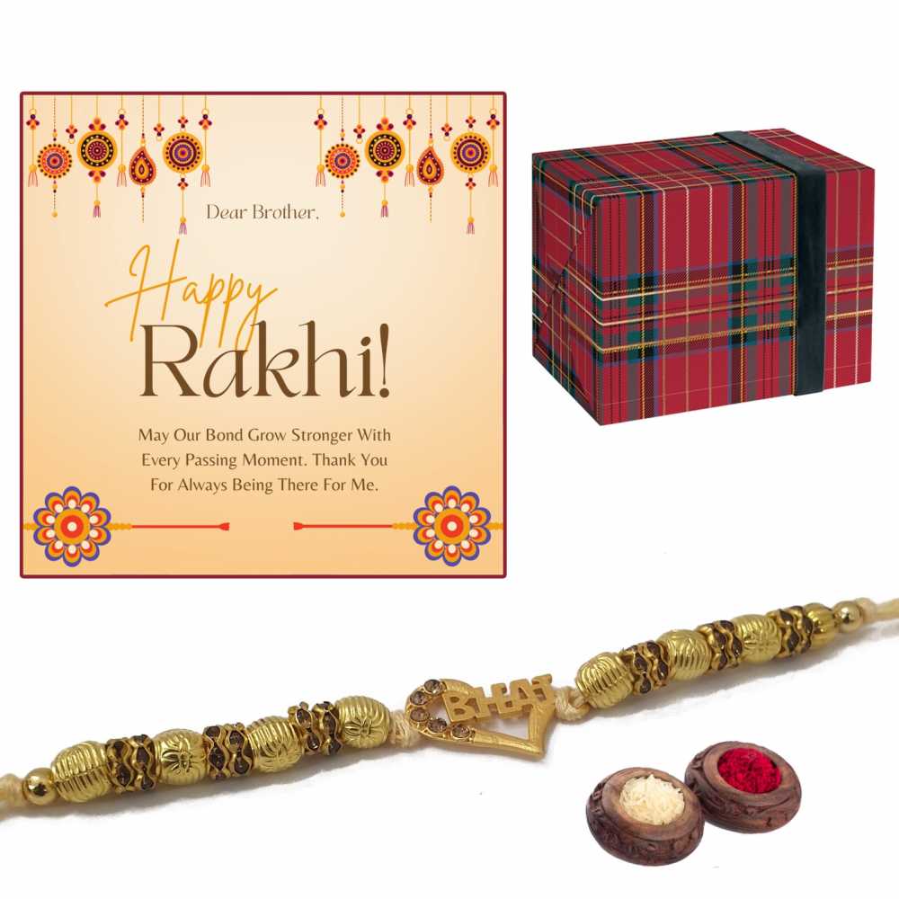 Bling Queen Novel Designer Rakhi plaqué or « Bhai » avec montre élégante Rakhi Carte de message de vœux du créateur Raksha Bandhan Rakhi Coffret cadeau pour frère Bhai Rakhi