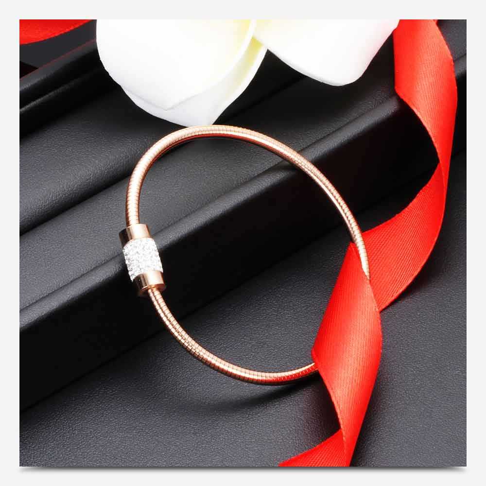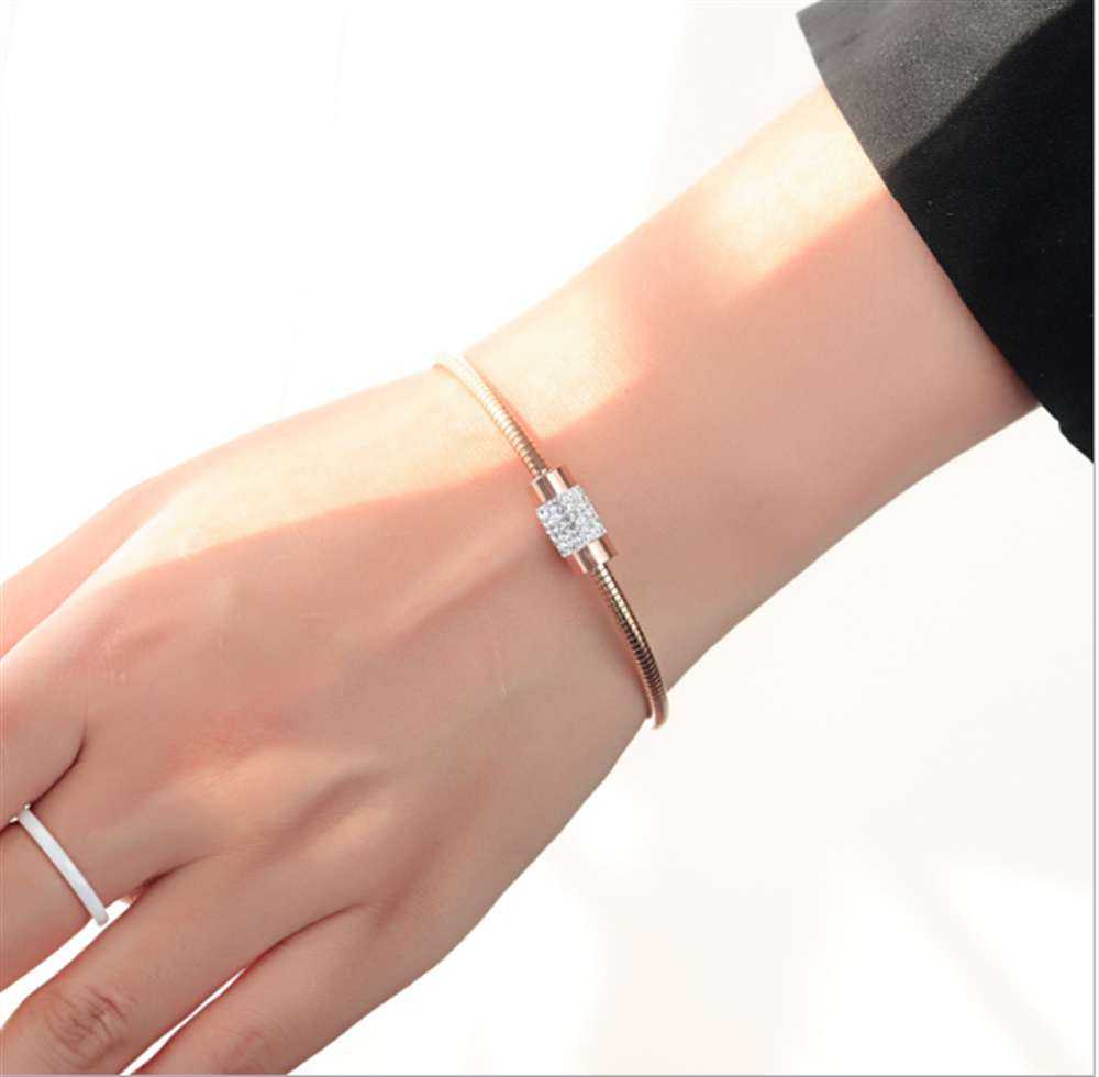 • Détails du produit : Ce bracelet est fabriqué à partir d'un matériau de haute qualité plaqué or rose et d'un bracelet clouté en cristal, sécurisé par un fermoir magnétique.