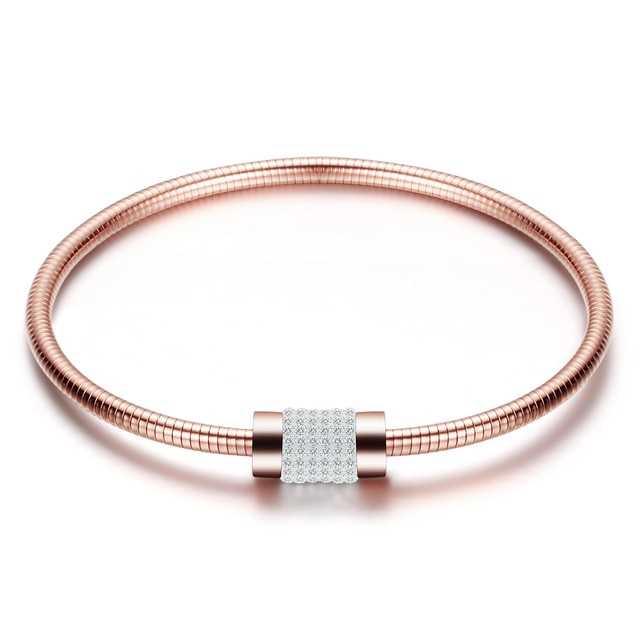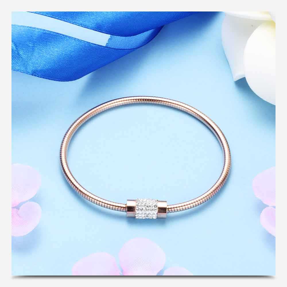 Bracelet clouté en cristal avec fermoir magnétique en or rose pour femme
