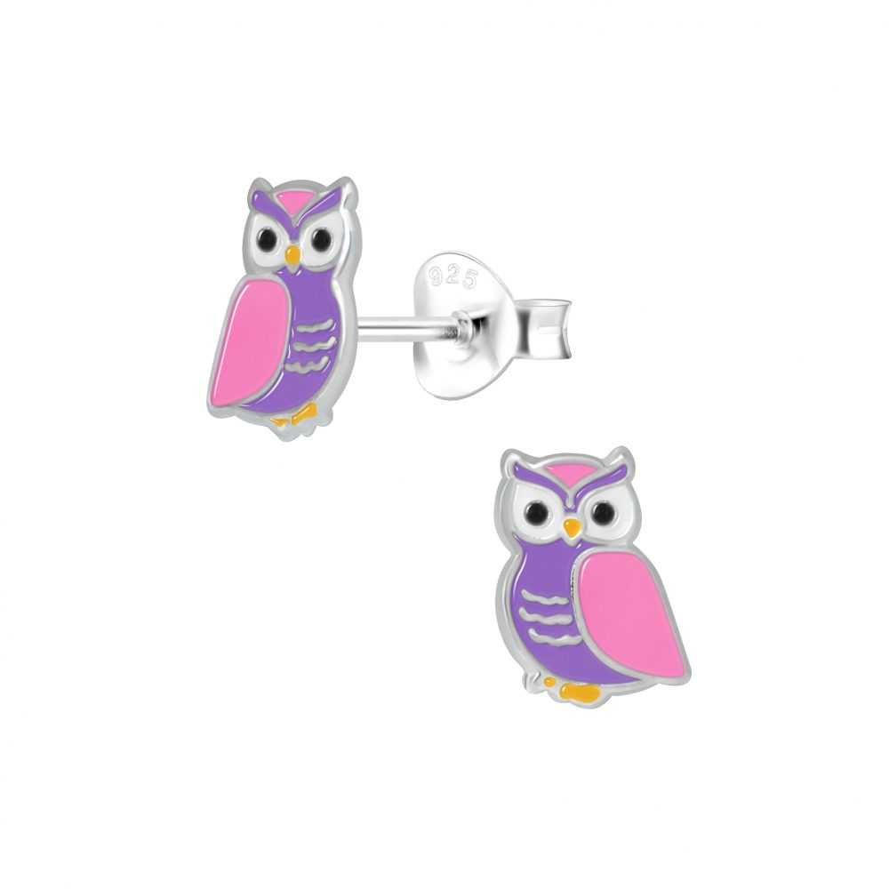 Boucles d'oreilles hibou en argent sterling pour enfants avec fermoir à pression