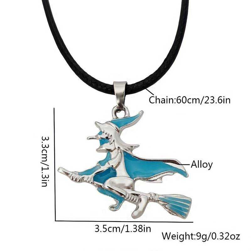 Witch Flying On Broom Stick Pendant With Synthetic Leather Necklace