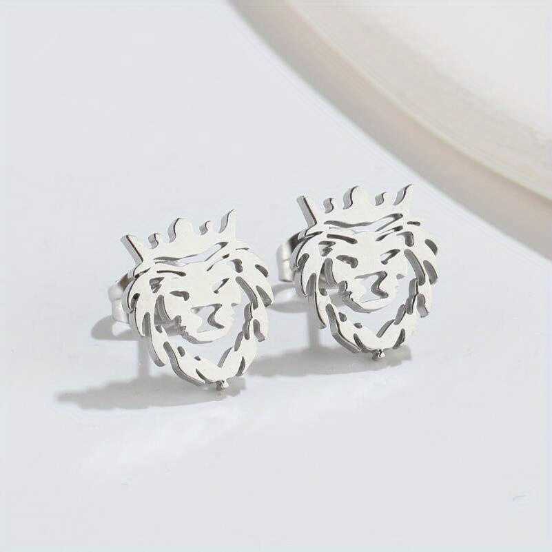 Boucles d'oreilles à tige en acier inoxydable pour homme, motif tête de lion, style unique