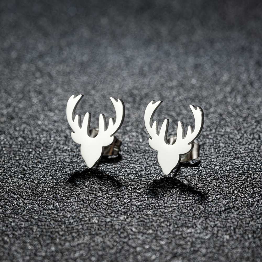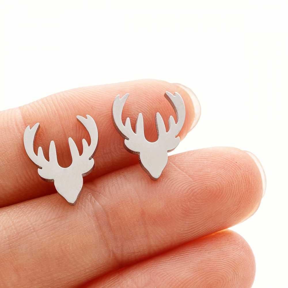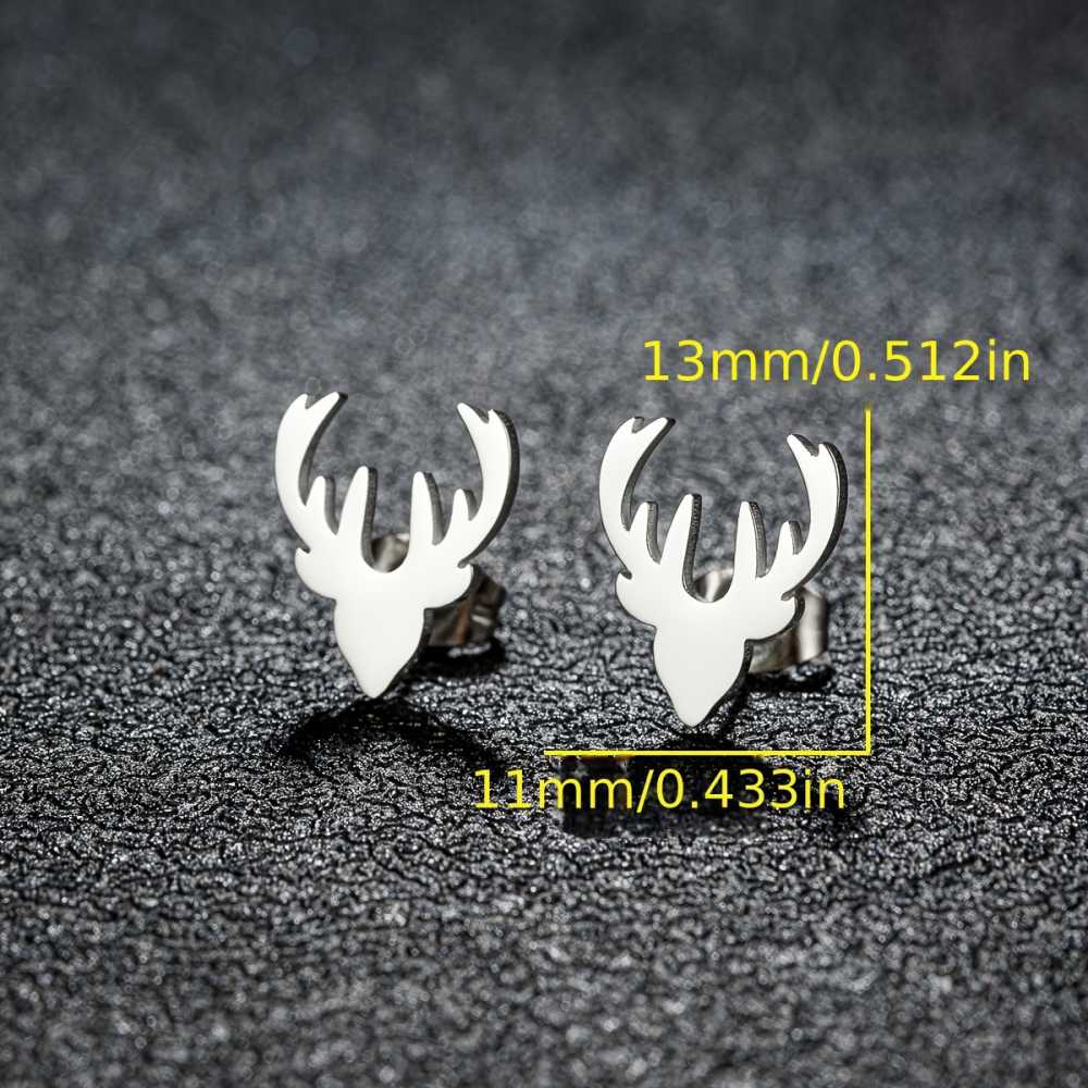 Boucles d'oreilles à tige en acier inoxydable pour homme, motif tête de cerf et bois, design élégant