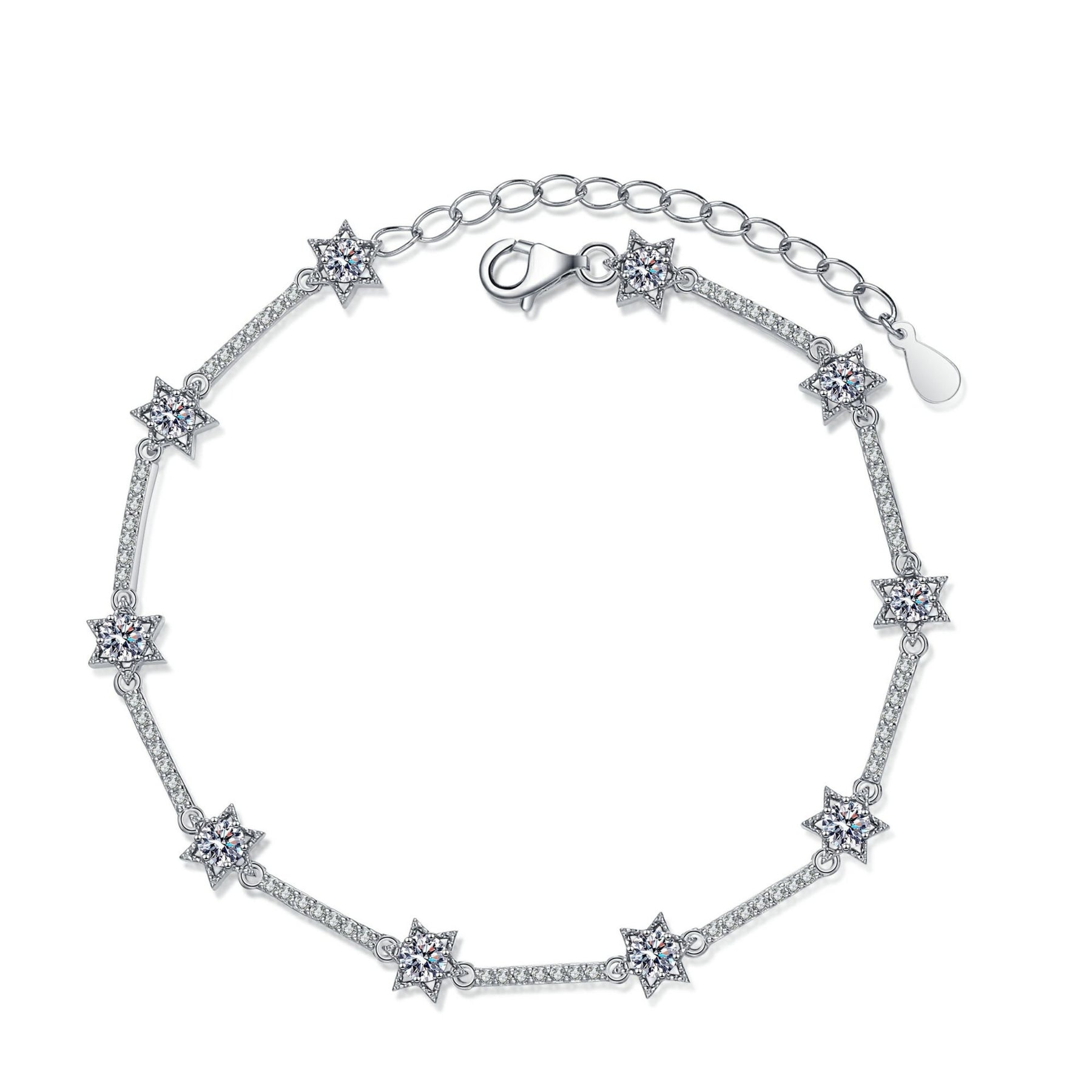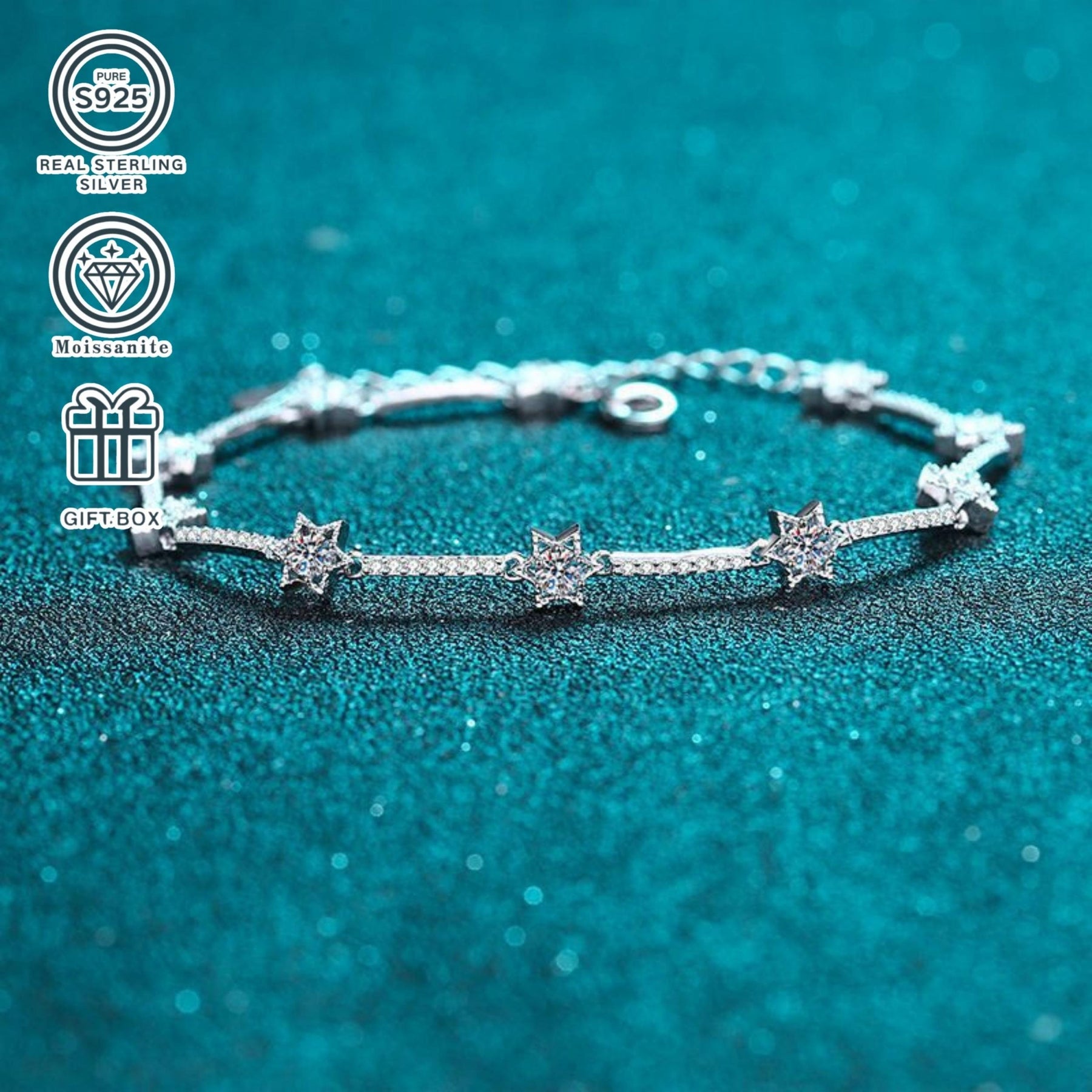 A stunning bracelet featuring a 1.0CT Moissanite inlaid into S925 silver with a hexagram design. Ideal for teenagers and adults, this bracelet makes a perfect gift for Christmas, Halloween, or other occasions.