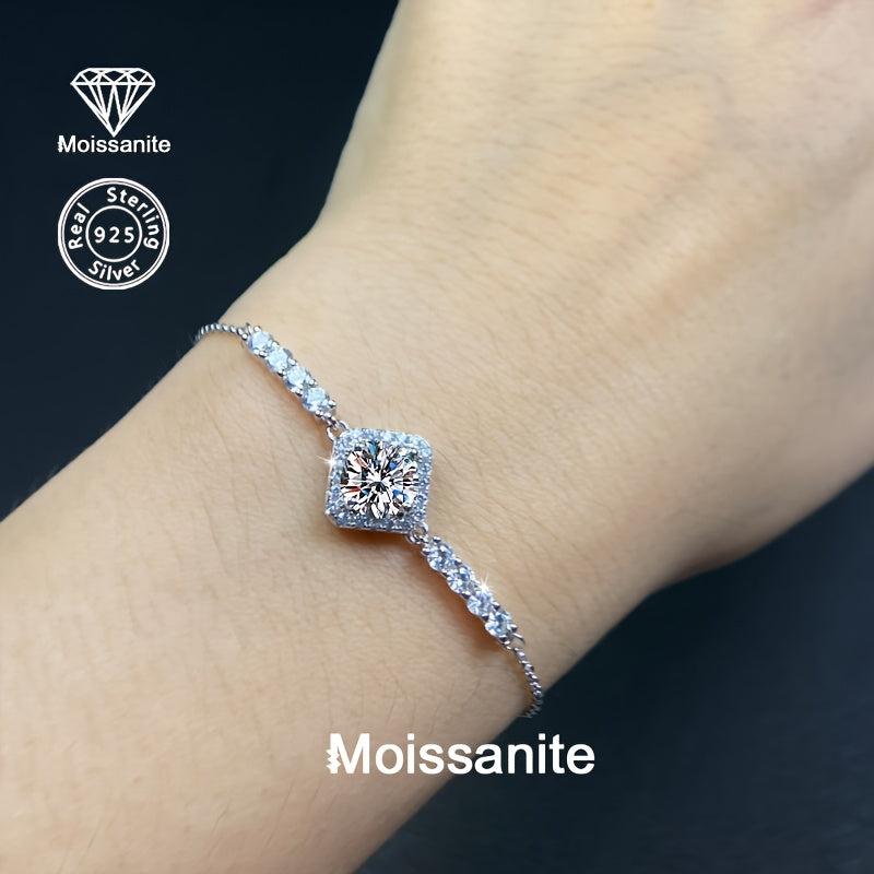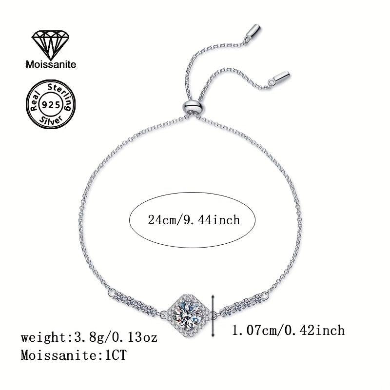 This stylish bracelet features a 1 carat moissanite stone set in 925 silver. Perfect for daily wear, birthdays, holidays, parties, weddings, and anniversaries.