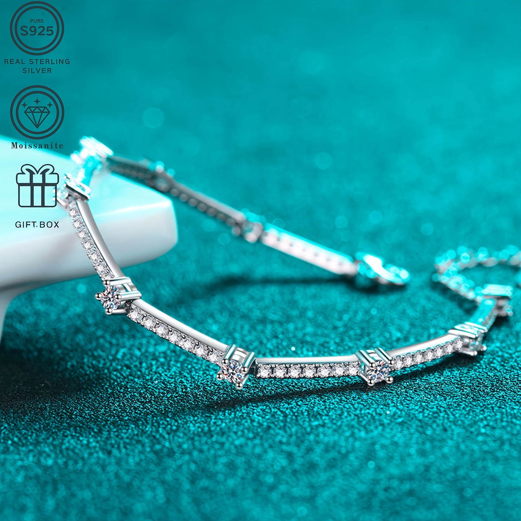 Elegant 925 sterling silver bracelet with 1.67 carats of sparkling moissanite. Perfect for daughters, granddaughters, and sisters.