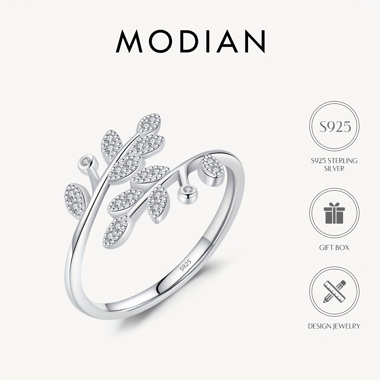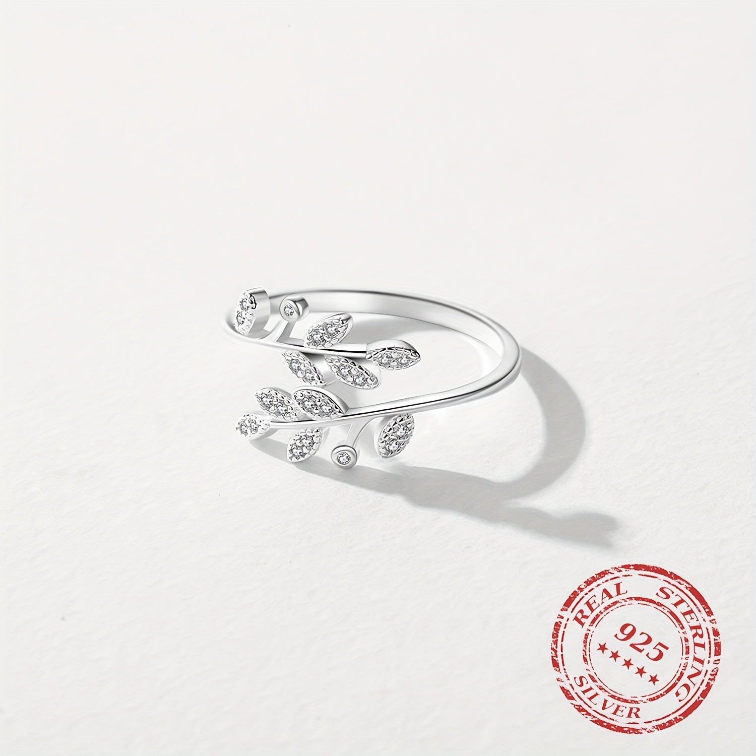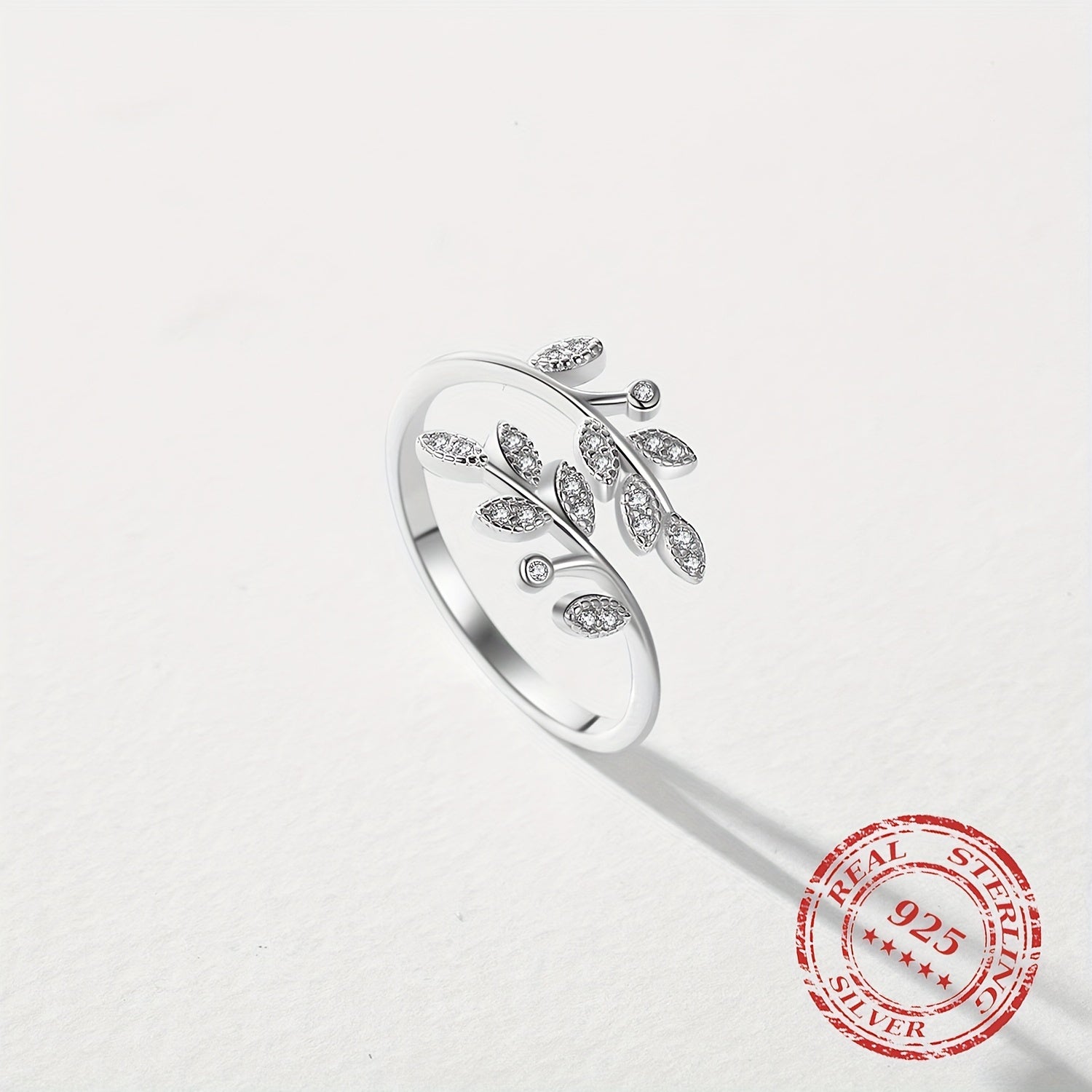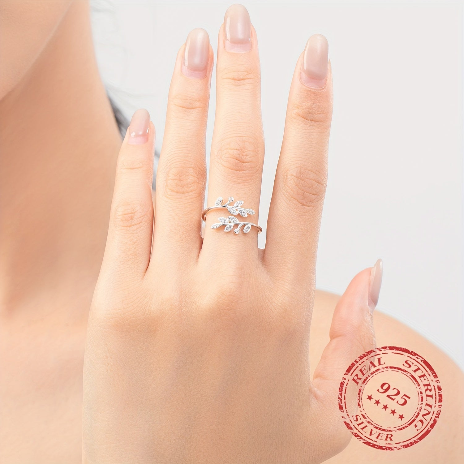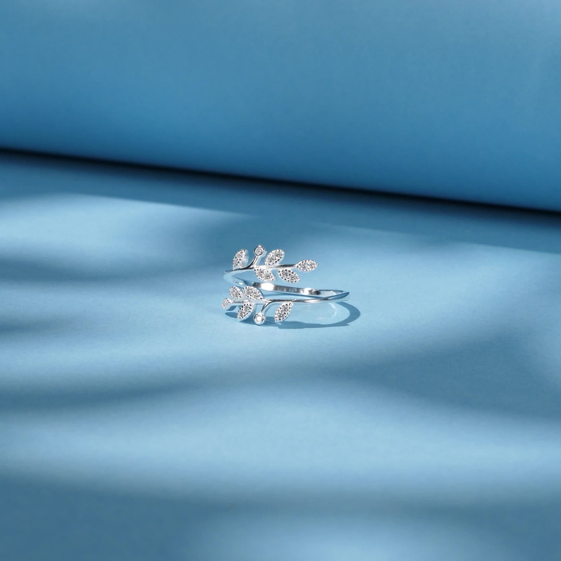 Elegant 925 sterling silver adjustable ring featuring sparkling CZ lucky tree leaf design. Perfect for daily wear and parties. Makes a great fine jewelry gift for women.