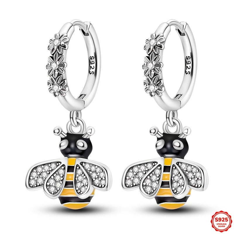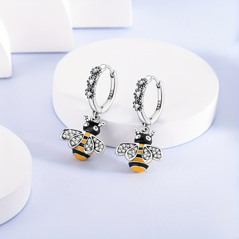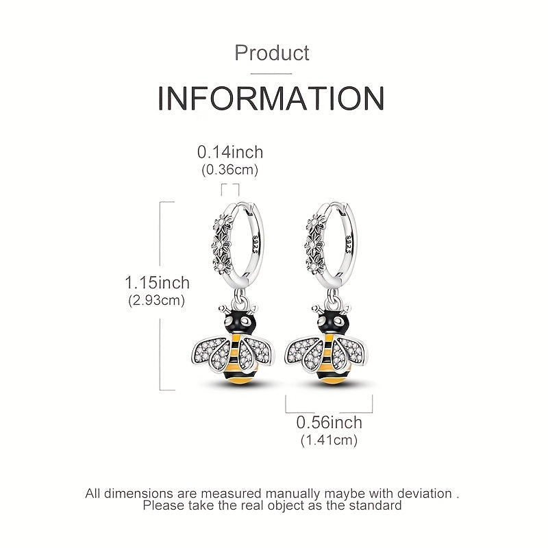 These cute bee earrings are made of 925 sterling silver, hypoallergenic and safe for sensitive ears. They feature synthetic zirconia in a January birthstone style. Perfect for women for parties and gift-giving occasions.