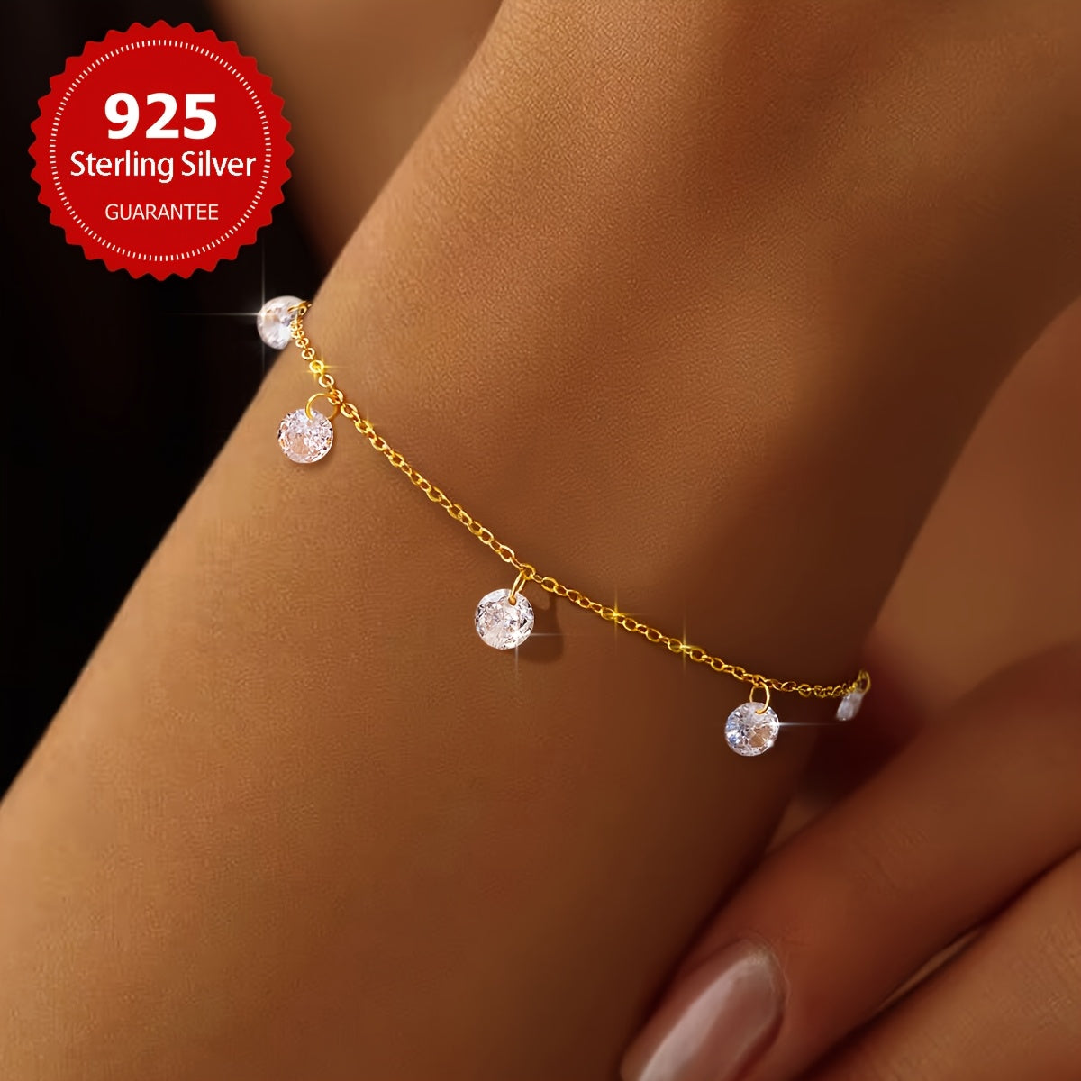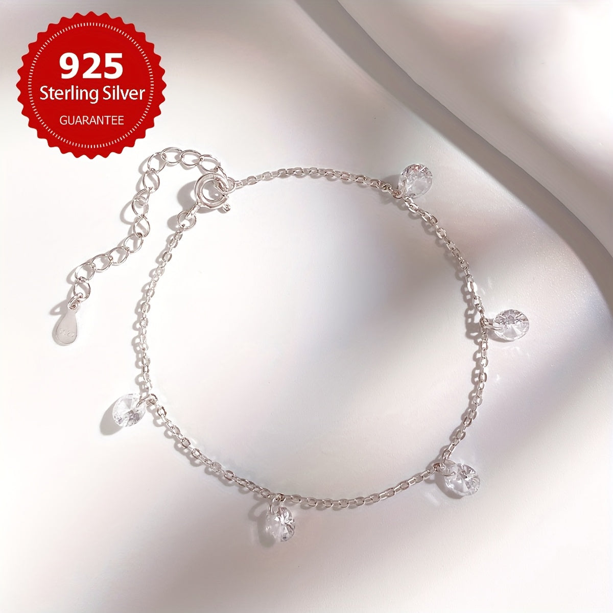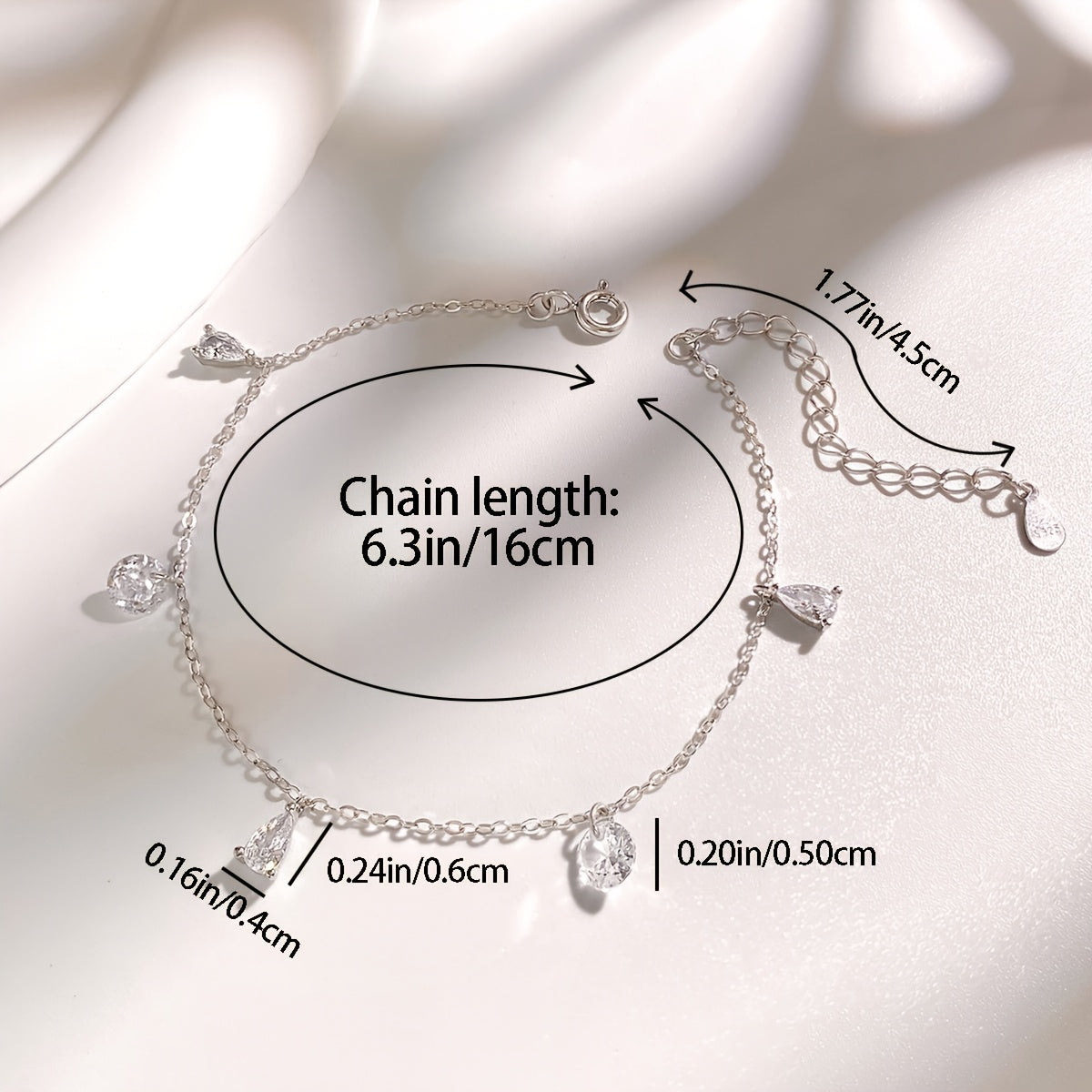 This stunning 925 sterling silver bracelet features round pear zirconia stones in a glitter style design. Perfect for daily wear or as a gift for Valentine's Day. This versatile piece is suitable for all seasons.