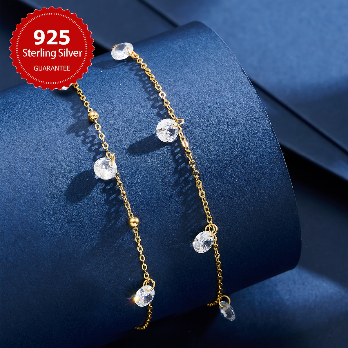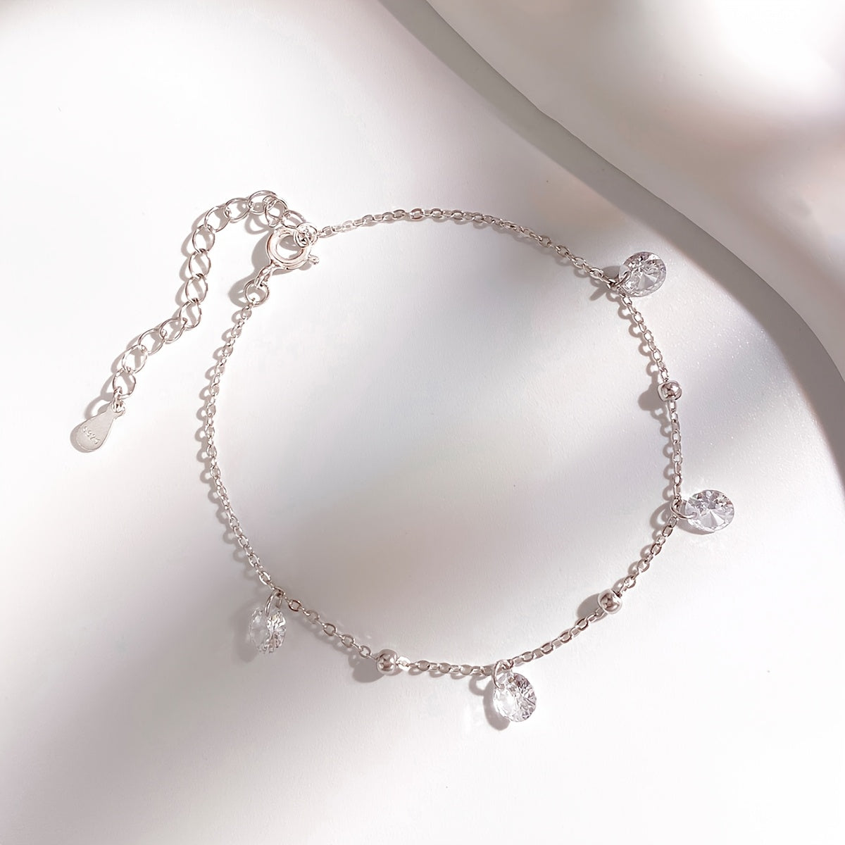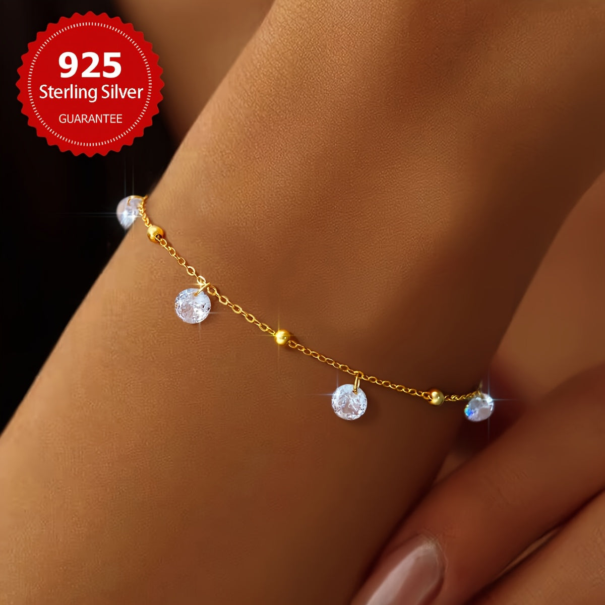 This stunning 925 sterling silver bracelet features round pear zirconia stones in a glitter style design. Perfect for daily wear or as a gift for Valentine's Day. This versatile piece is suitable for all seasons.