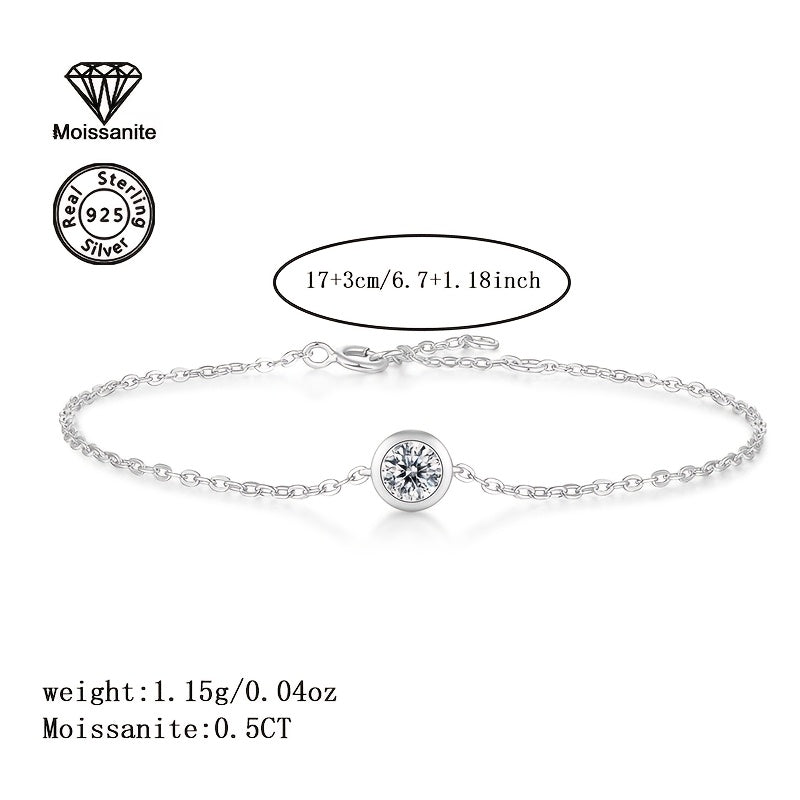 925 Silver Bracelet with 0.5 Carat Moissanite, Perfect Gift for Women