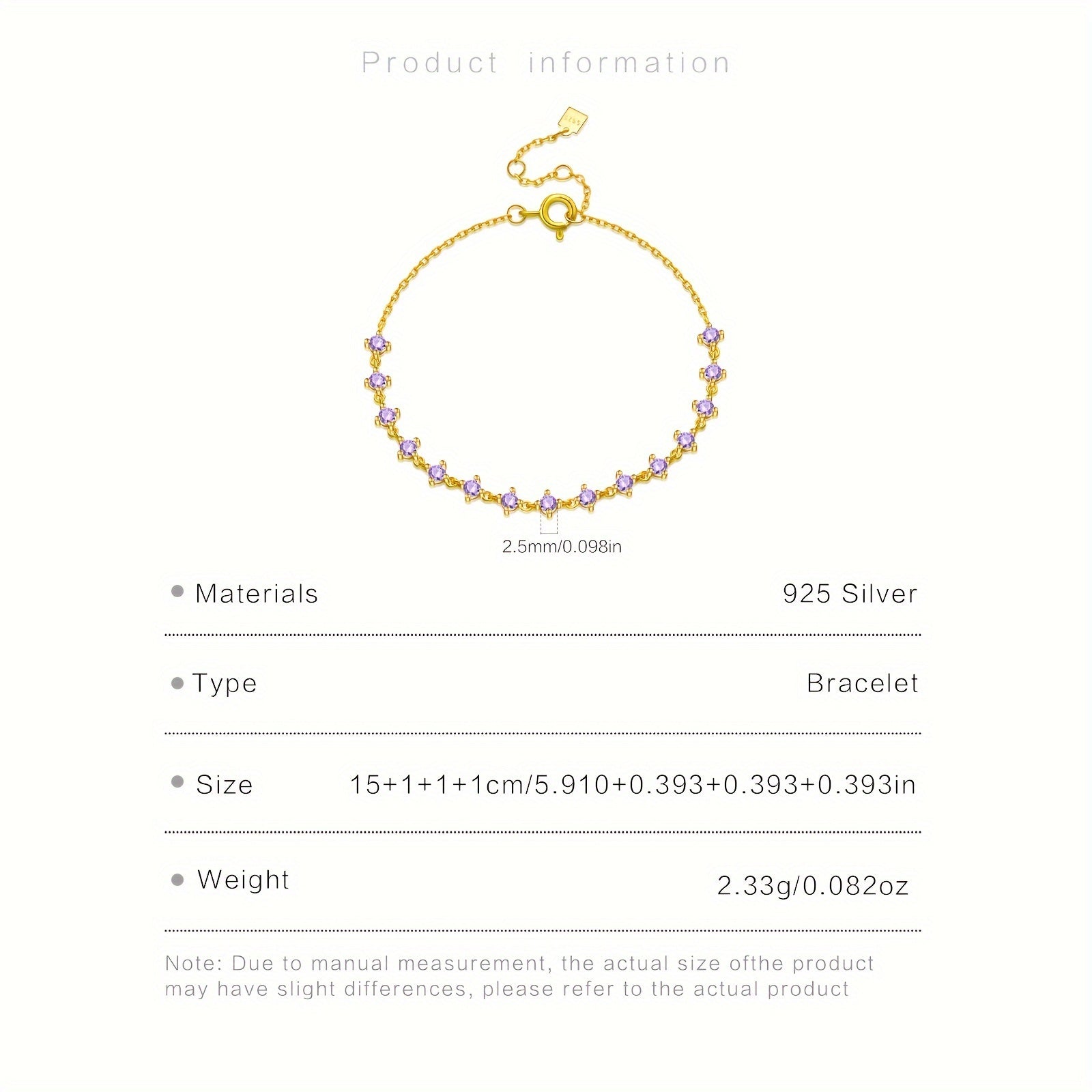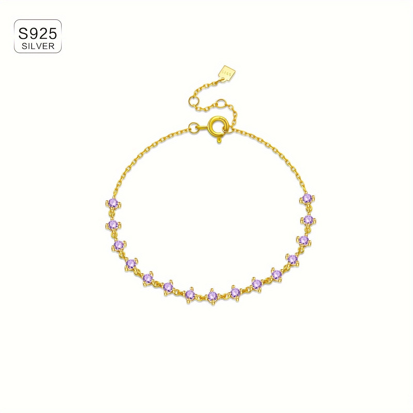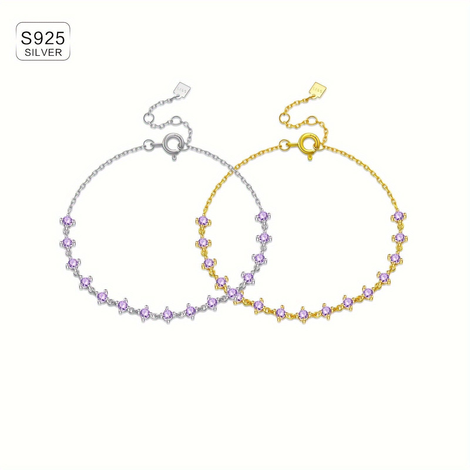 Add a touch of elegance with this stunning 925 silver bracelet featuring a full row of purple synthetic cubic zirconia stones. Perfect for all-season wear and makes an ideal gift for nurses.