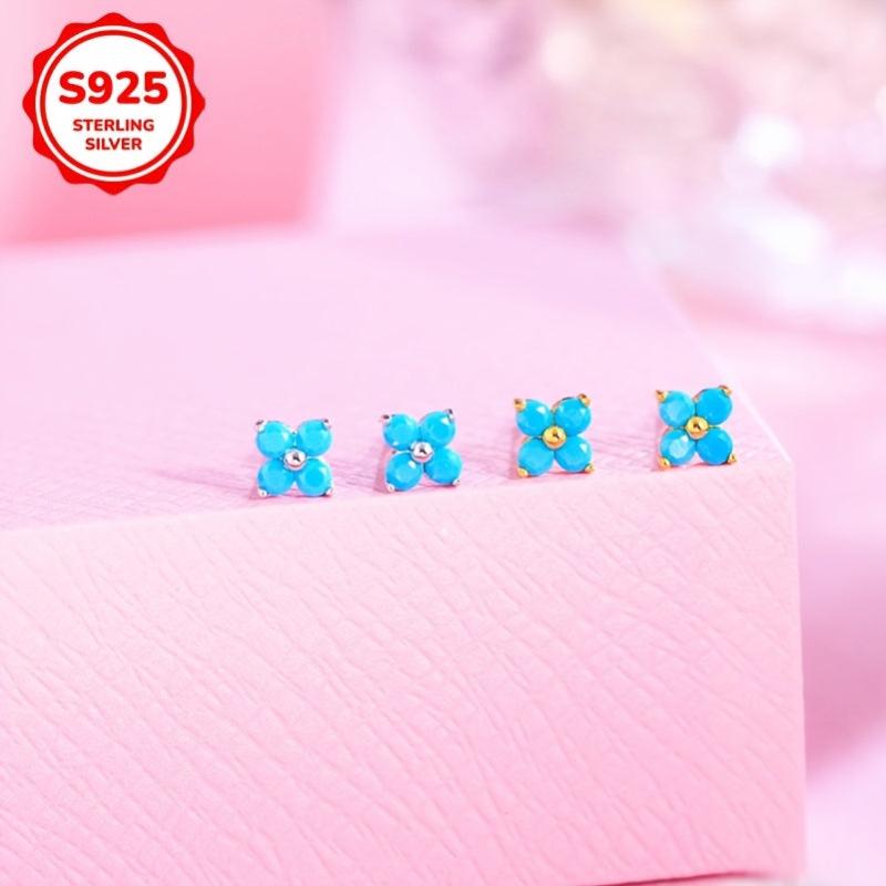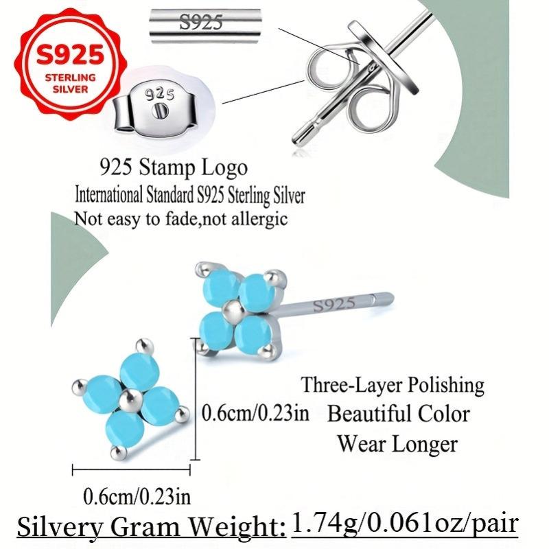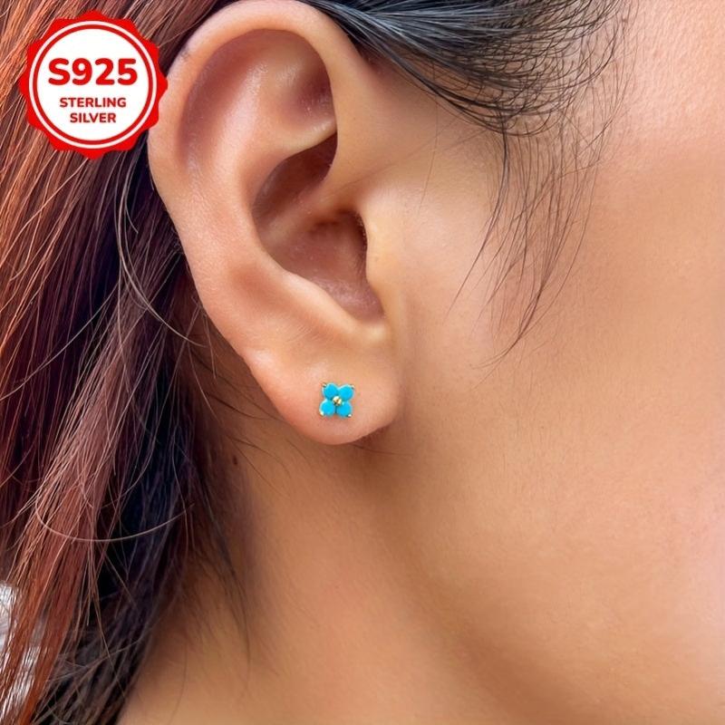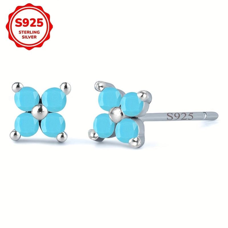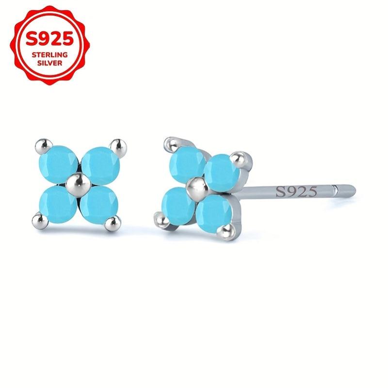 These stylish 925 sterling silver clover earrings feature synthetic turquoise decoration. They are a low allergy option and make a fashionable gift for women.