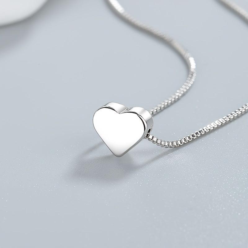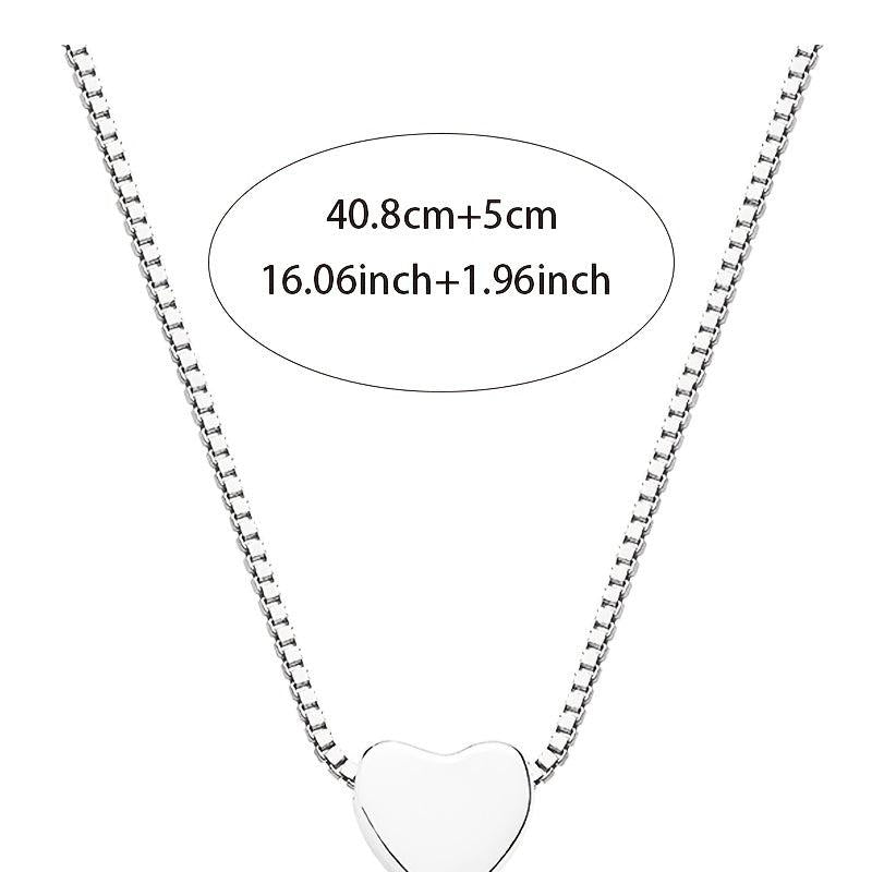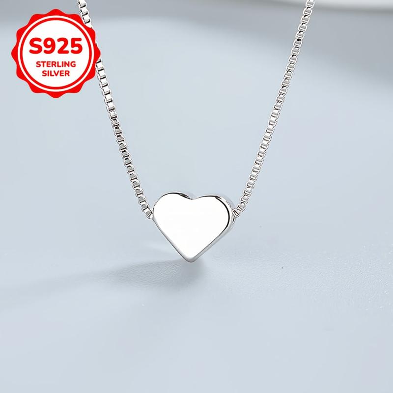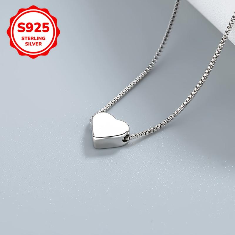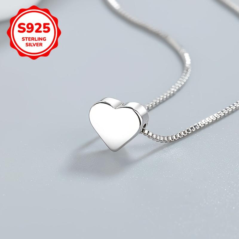 925 Silver Compact Love Pendant Necklace Plain Chain Low Allergy