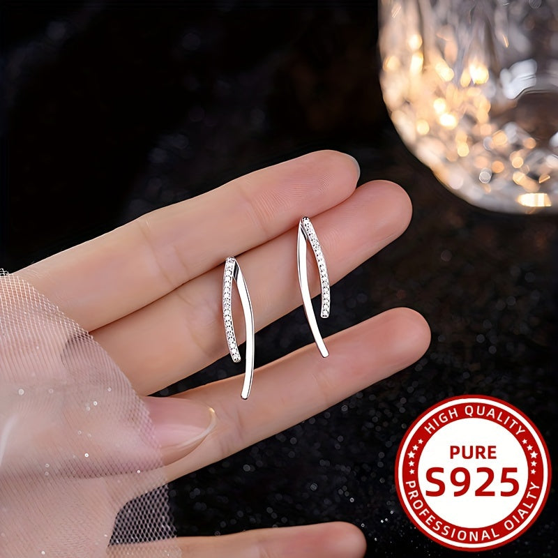 Add a touch of elegance to your outfit with these 925 silver earrings featuring a curve line design and sparkling synthetic zirconia. Perfect for daily wear or vacation.