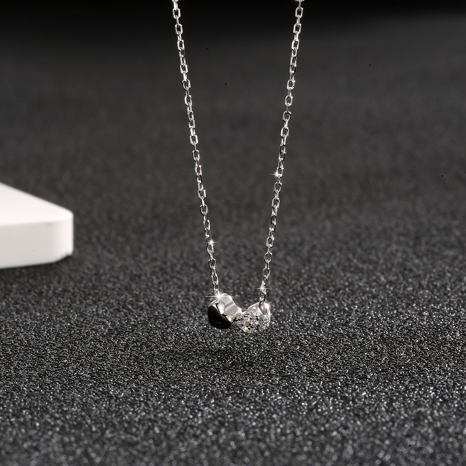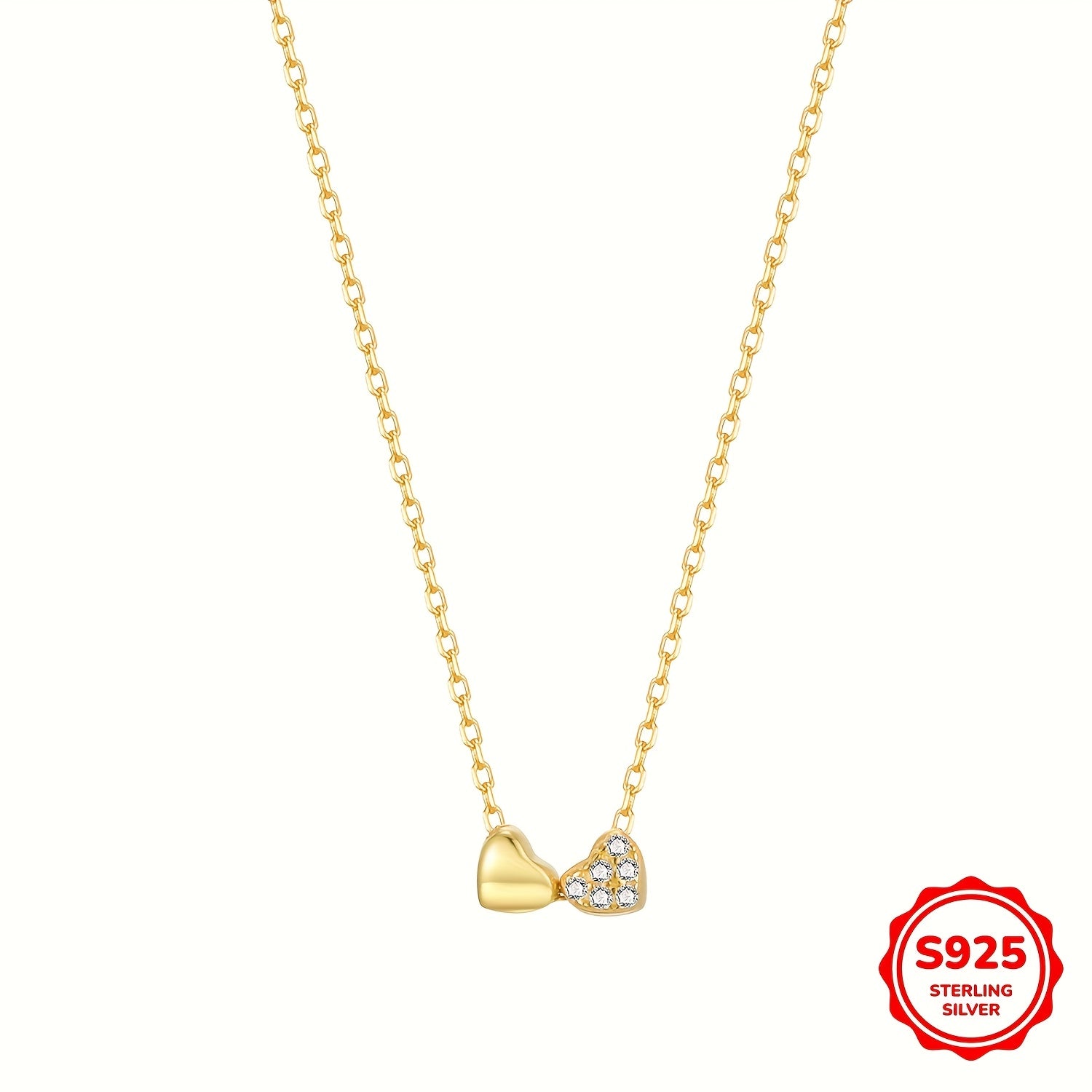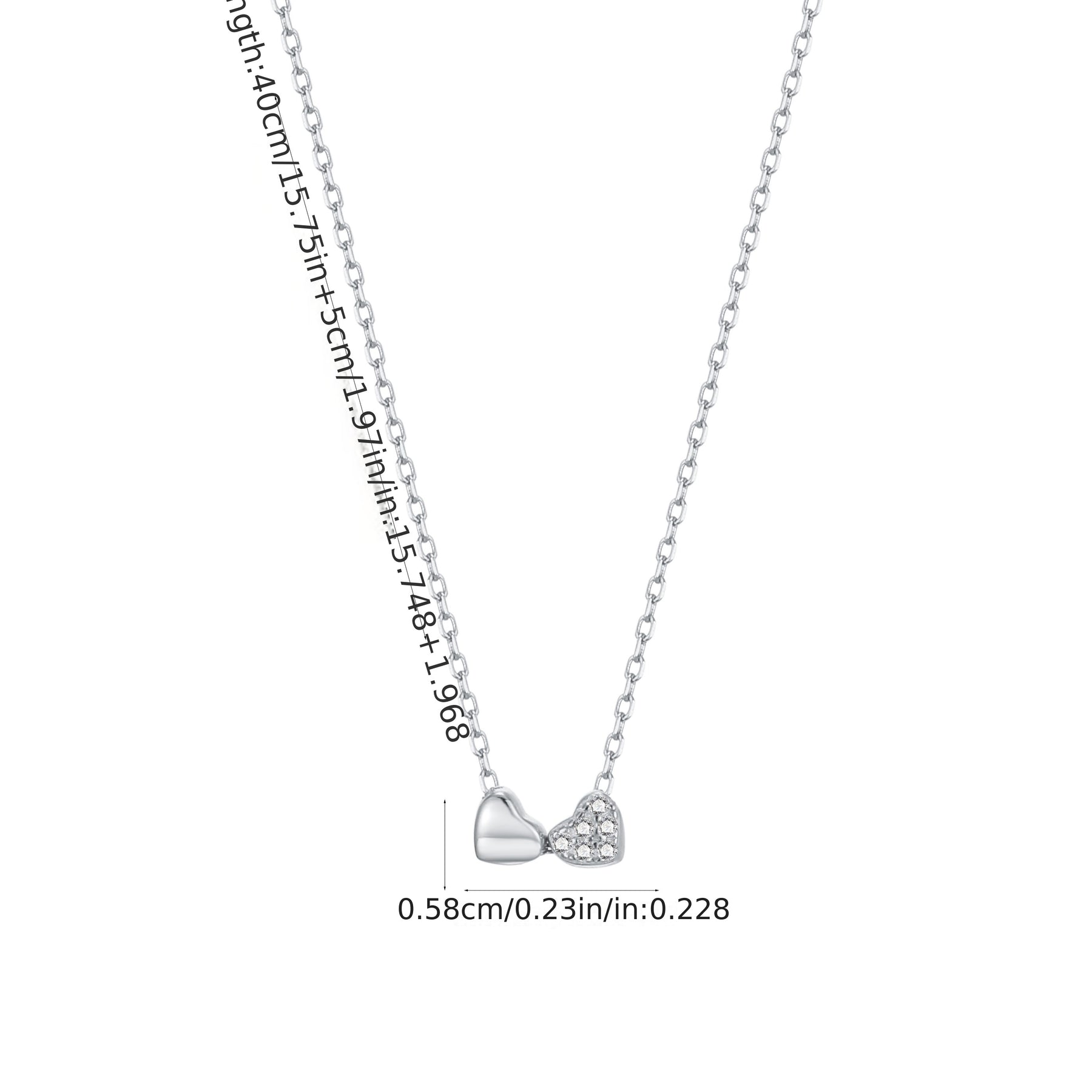 Elegant 925 sterling silver necklace featuring a double heart pendant with sparkling zirconia stones. Perfect for daily wear and vacation. Silver plated clavicle chain adds a touch of sophistication.