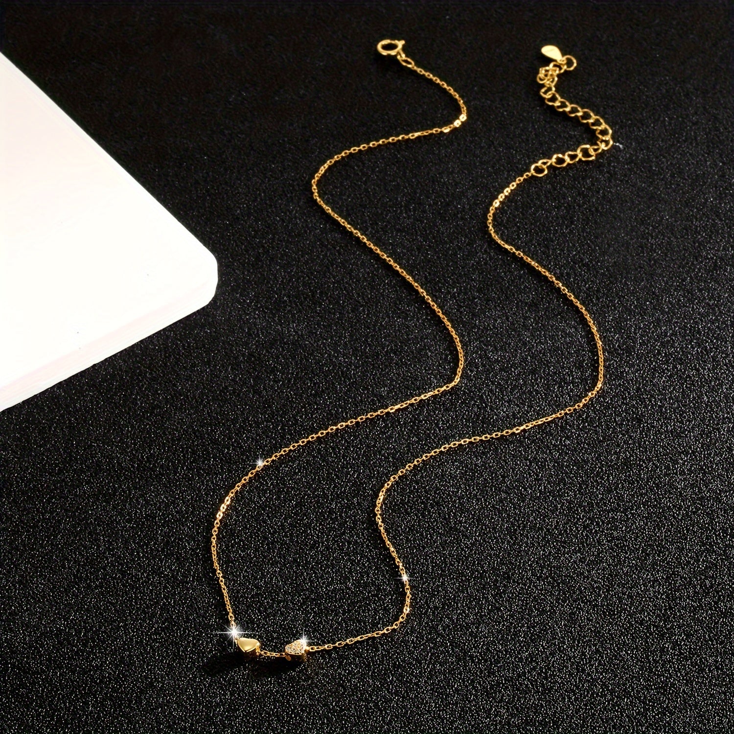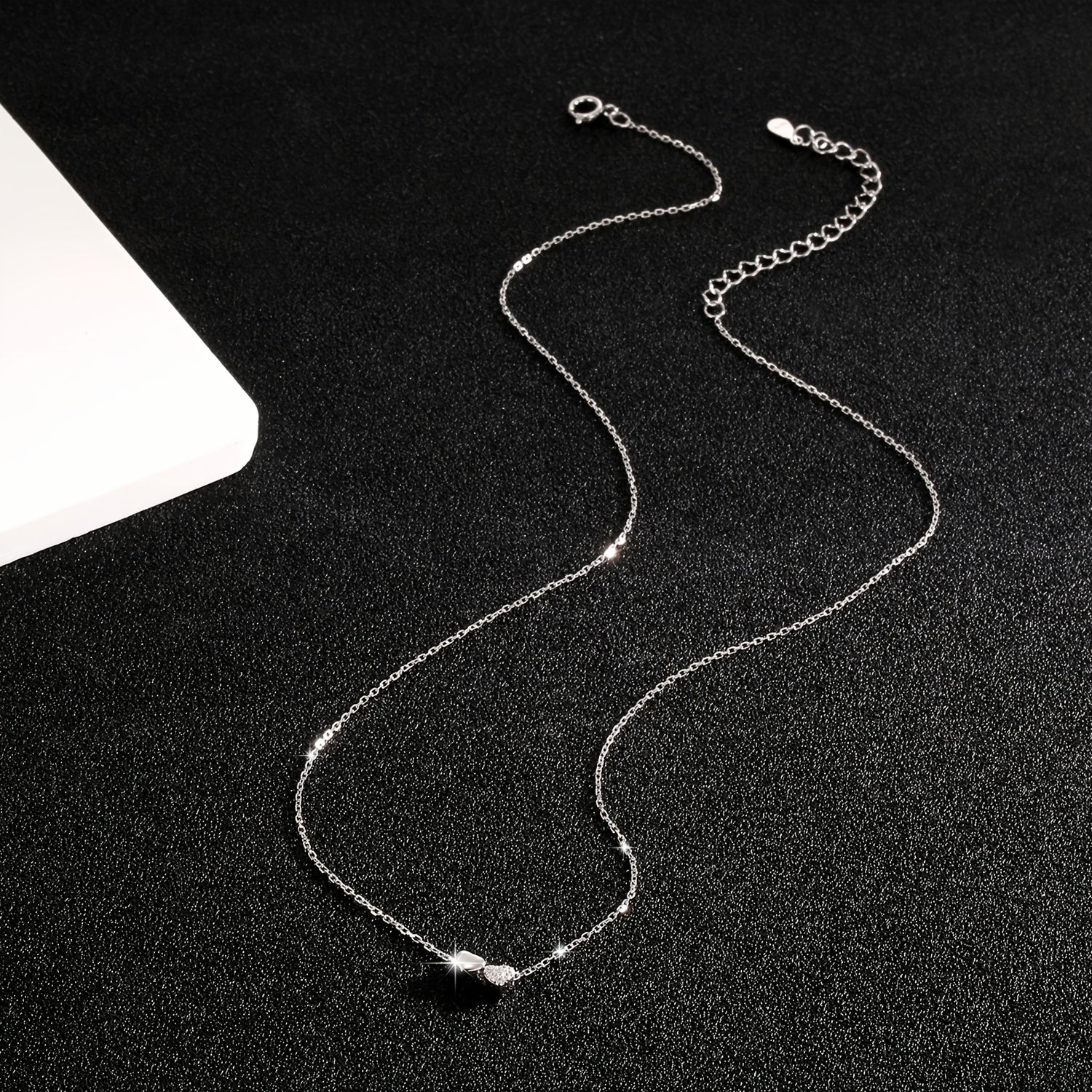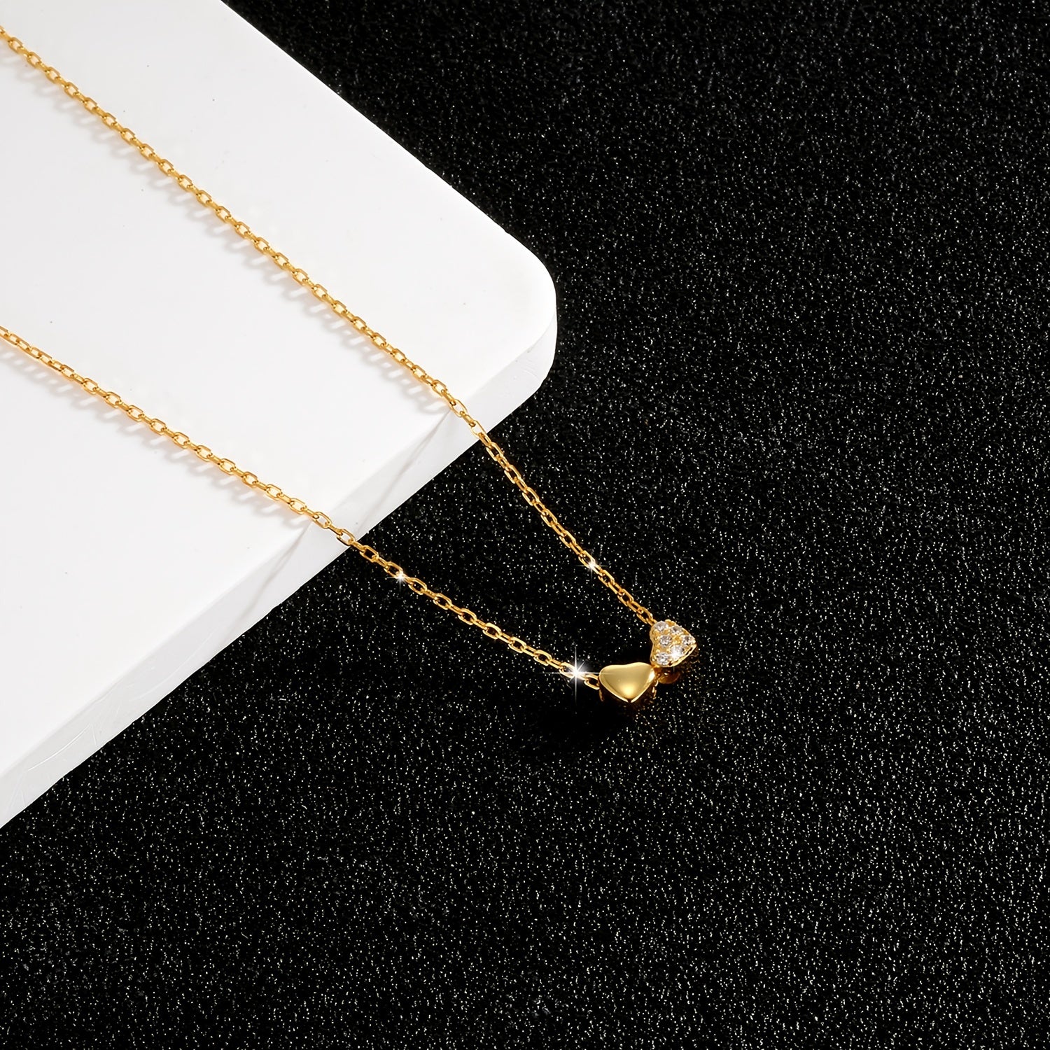 Elegant 925 sterling silver necklace featuring a double heart pendant with sparkling zirconia stones. Perfect for daily wear and vacation. Silver plated clavicle chain adds a touch of sophistication.