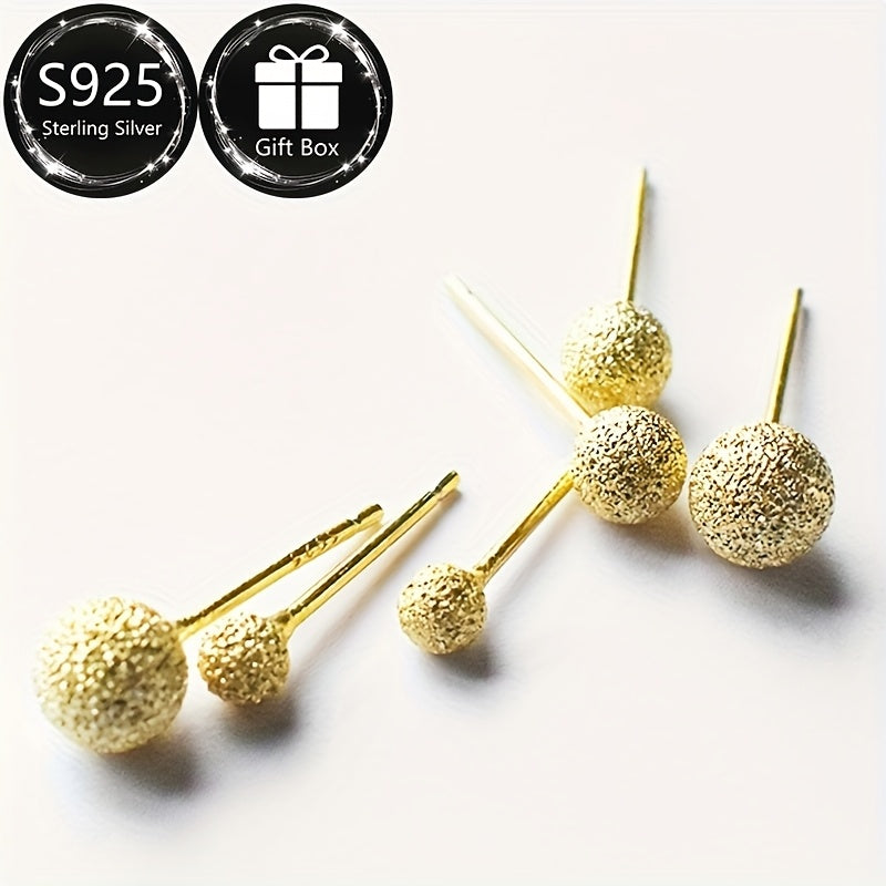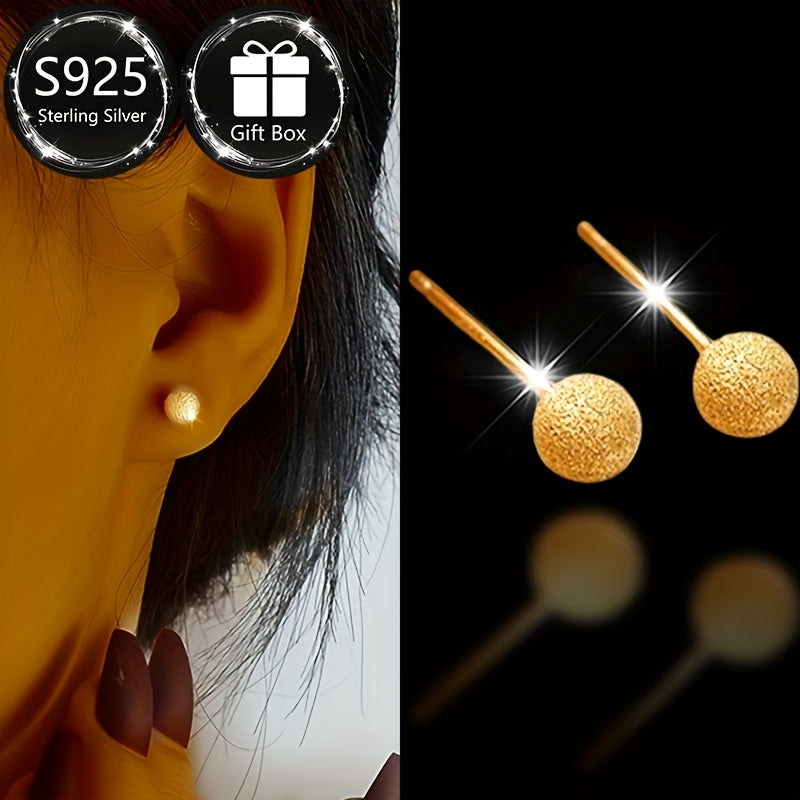 These 925 sterling silver ear studs feature a stylish design with a 14K golden plated spherical accent. Perfect for daily wear and special occasions, these earrings add a touch of elegance to any outfit.