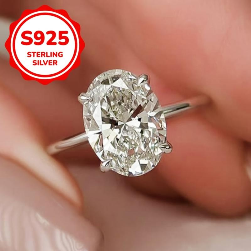 These classic egg-shaped rings are crafted from sterling silver with clear zirconia stones. Perfect for weddings, engagements, promises, or as a gift for loved ones.
