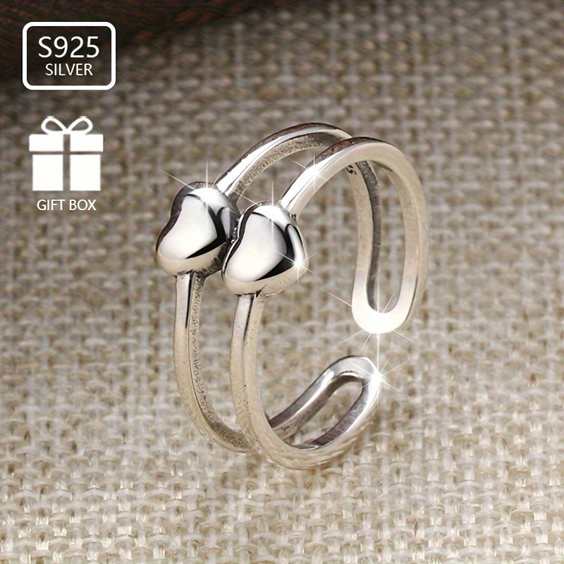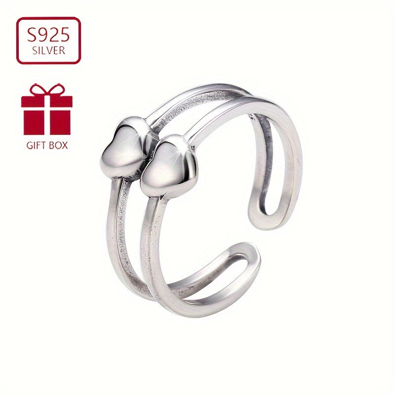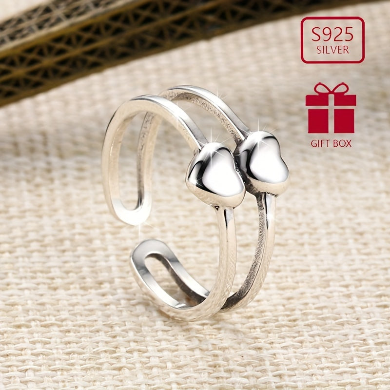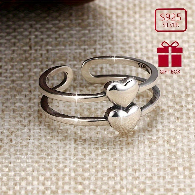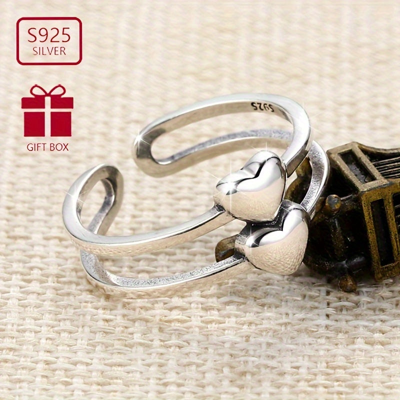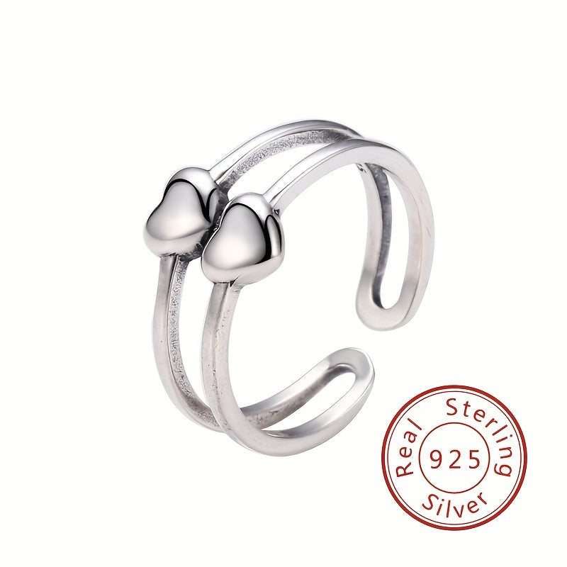 This vintage-inspired 925 silver double layer ring featuring a heart design is the perfect gift for Valentine's Year.