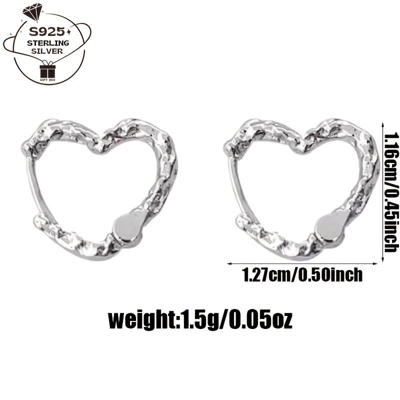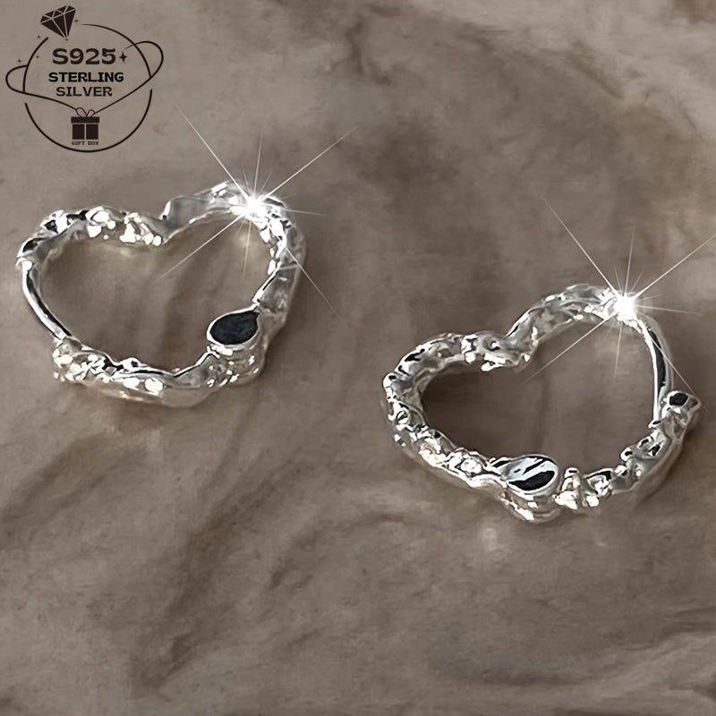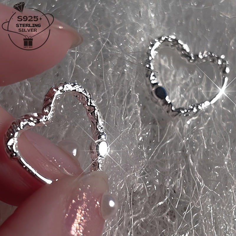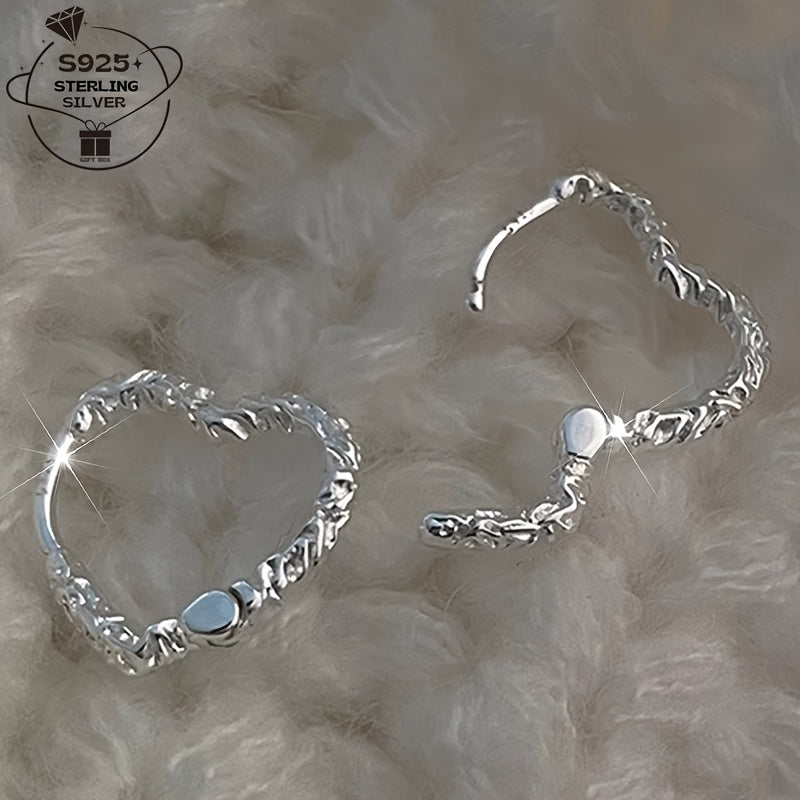 These heart-shaped earrings are made of 925 silver, perfect for daily wear or parties.